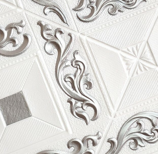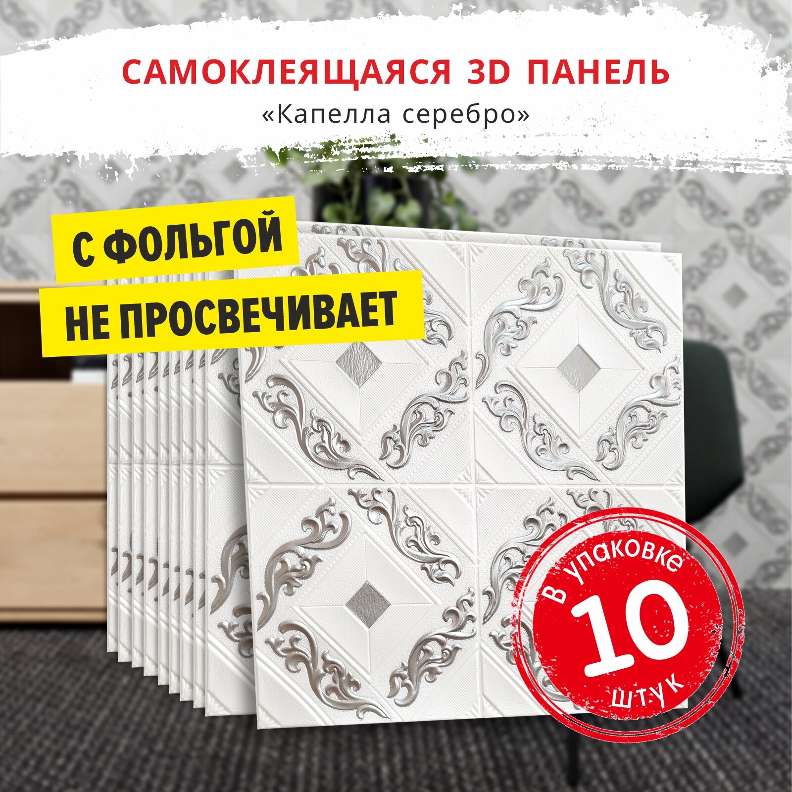 СохранитьСамоклеющаяся панель для стен мягкая с фольгой "Капелла серебро" 10 шт. 3D 690*690*4 мм самоклеящиеся обои для кухни моющиеся влагостойкие или потолочные плитки интересное: