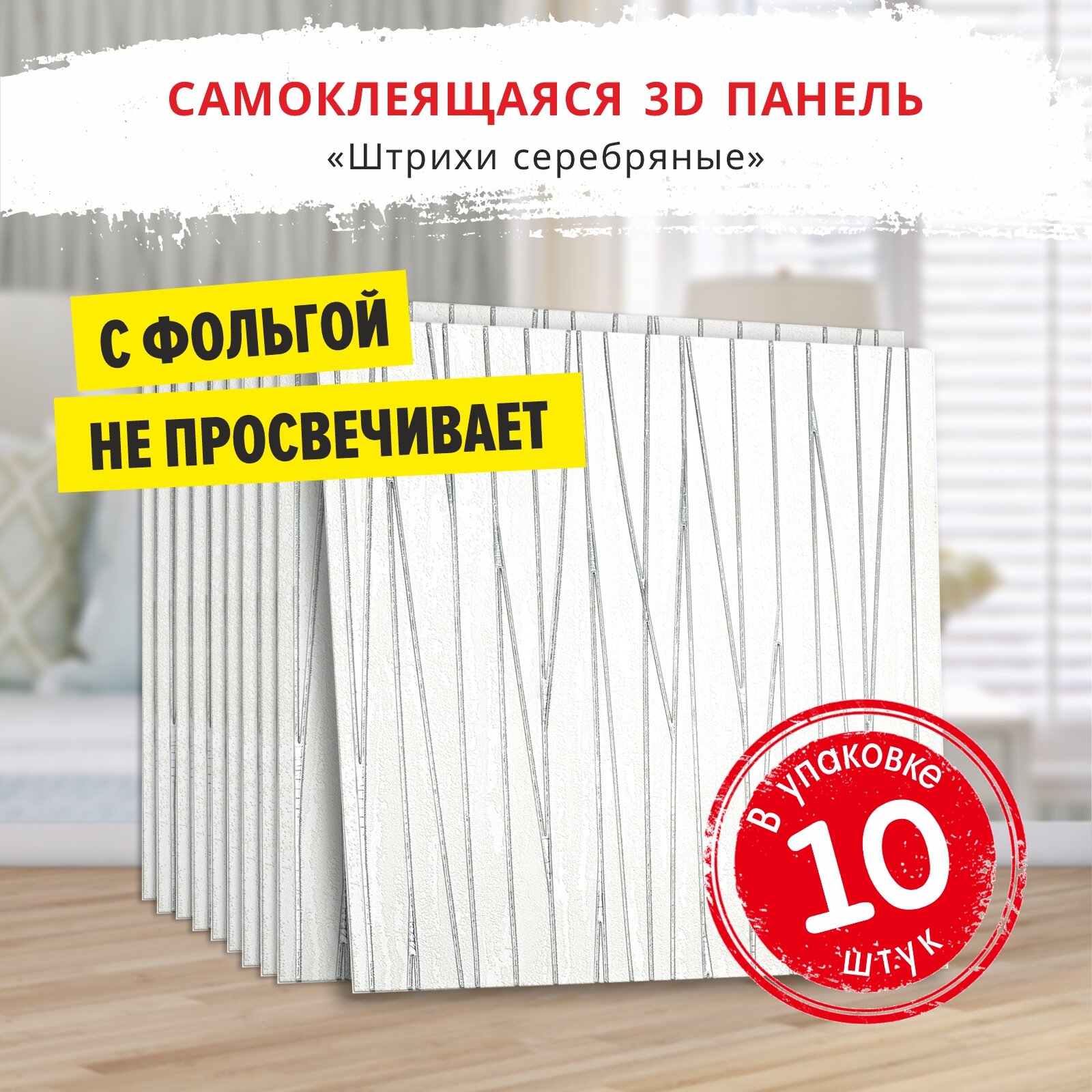 СохранитьСамоклеющаяся панель для стен мягкая с фольгой "Штрихи серебро" 10 шт. 3D 690*690*4 мм мягкие 3Д обои для кухни моющиеся или потолочные плитки интересное: