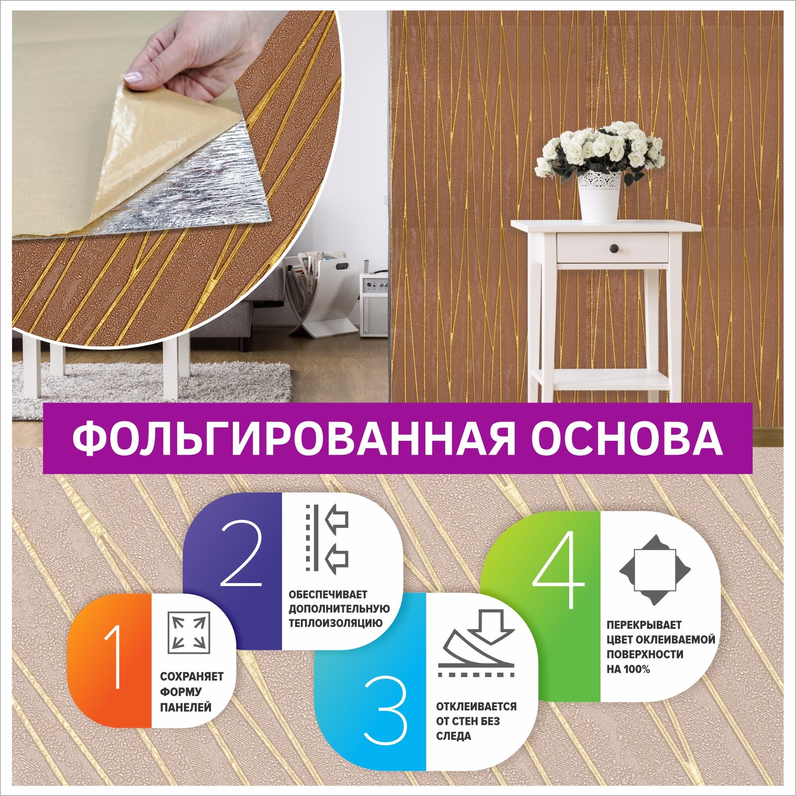 Самоклеющаяся панель для стен мягкая с фольгой "Капелла бежевая" 10 шт. 3D 690*690*4 мм самоклеящиеся обои для кухни моющиеся влагостойкие или потолочные плитки