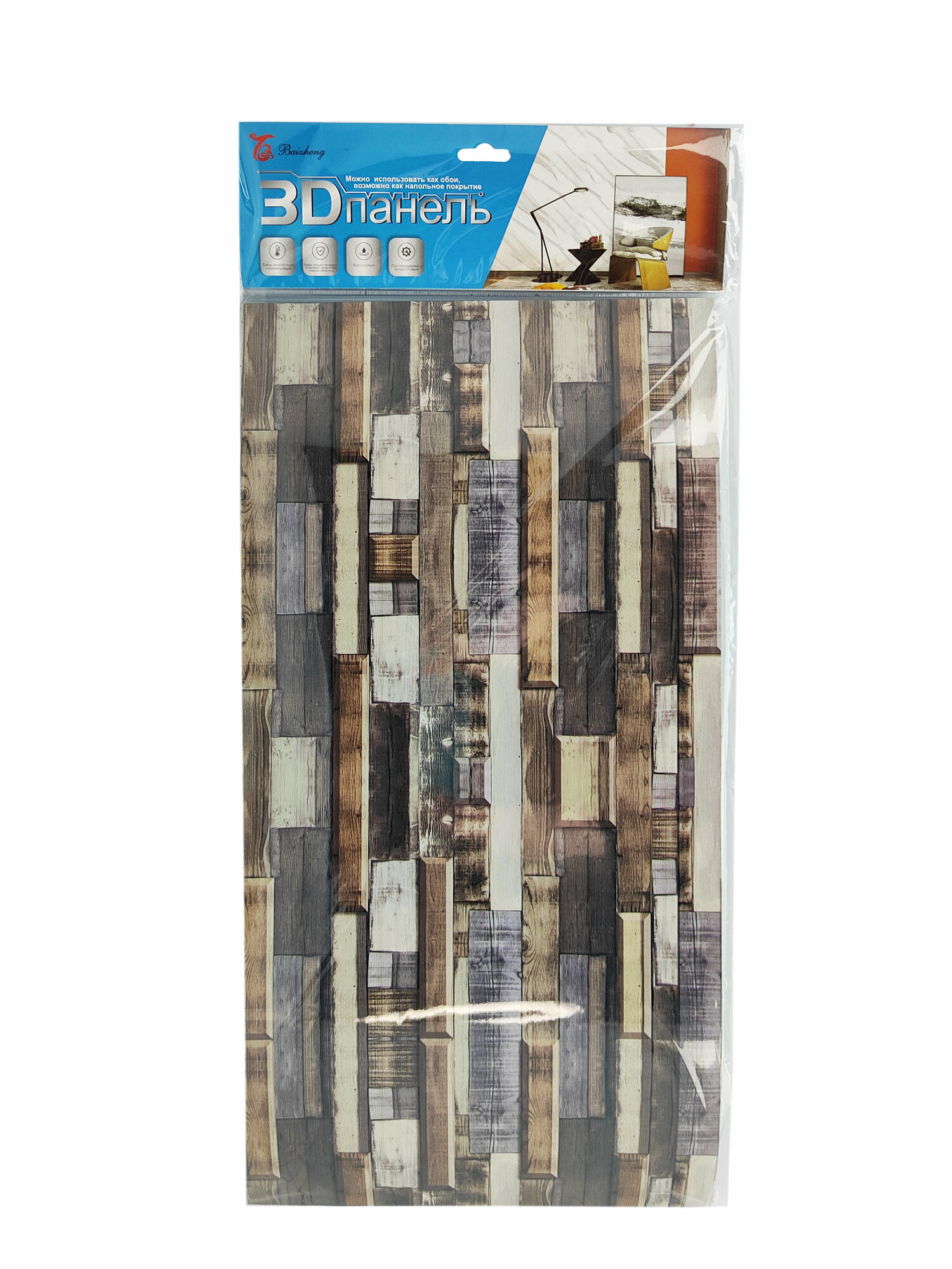 Панель стеновая самоклеящаяся 3D Темное дерево. 12 шт.