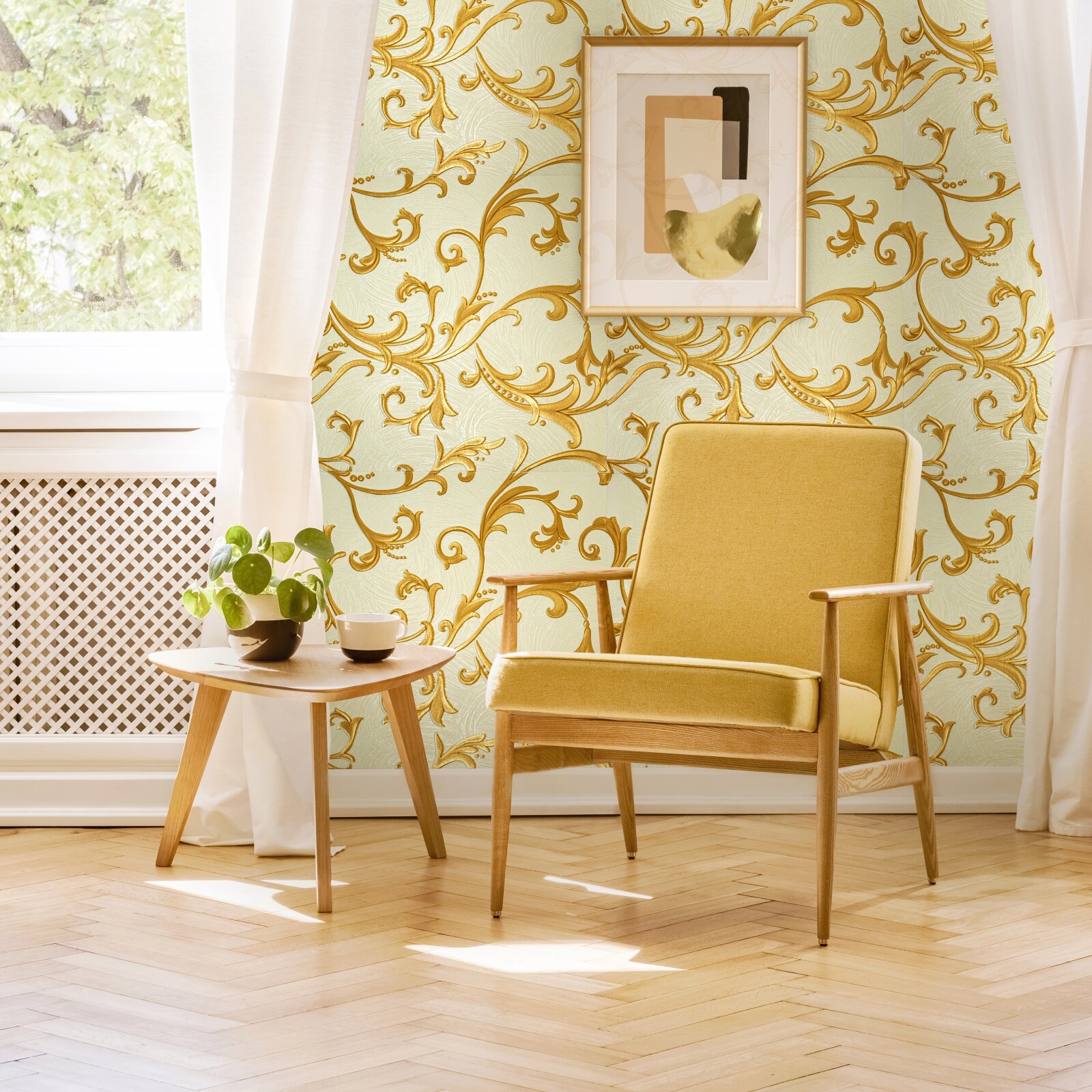 Самоклеющаяся панель для стен мягкая с фольгой "Завитки золотистые" 10 шт. 3D 690*690*4 мм 3Д обои для кухни моющиеся фартук на стену