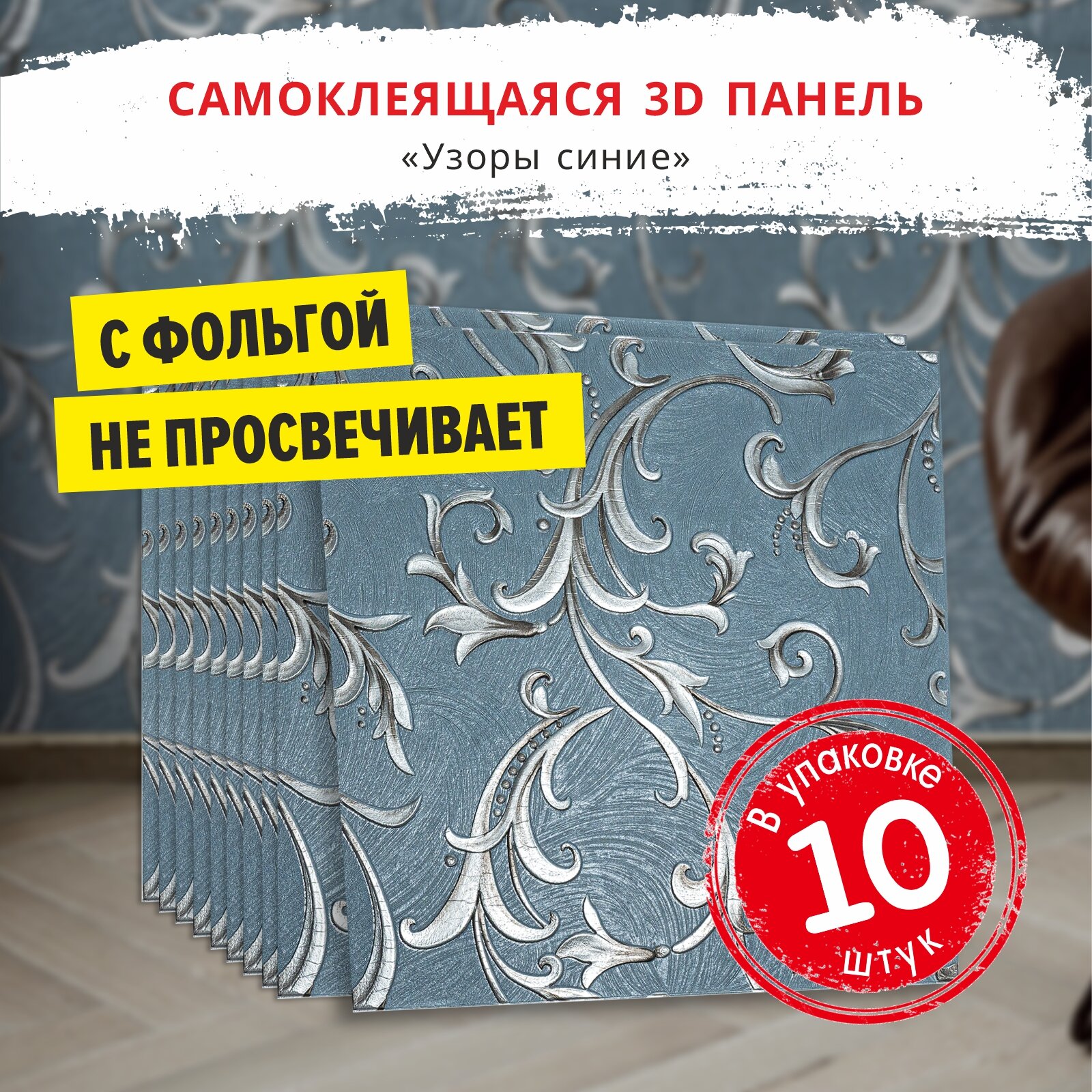СохранитьСамоклеющаяся панель для стен мягкая с фольгой "Узоры синие" 10 шт. 3D 690*690*4 мм 3Д обои для кухни моющиеся фартук на стену интересное: