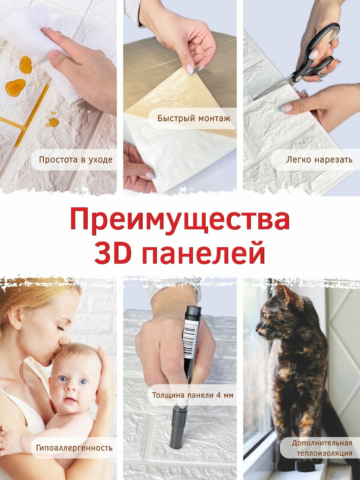 "Кирпич белый" 60 шт. самоклеящиеся мягкие 3д ПВХ панели для стен и потолка 500*550*4 мм вместо 3Д обоев для стен и потолочной плитки