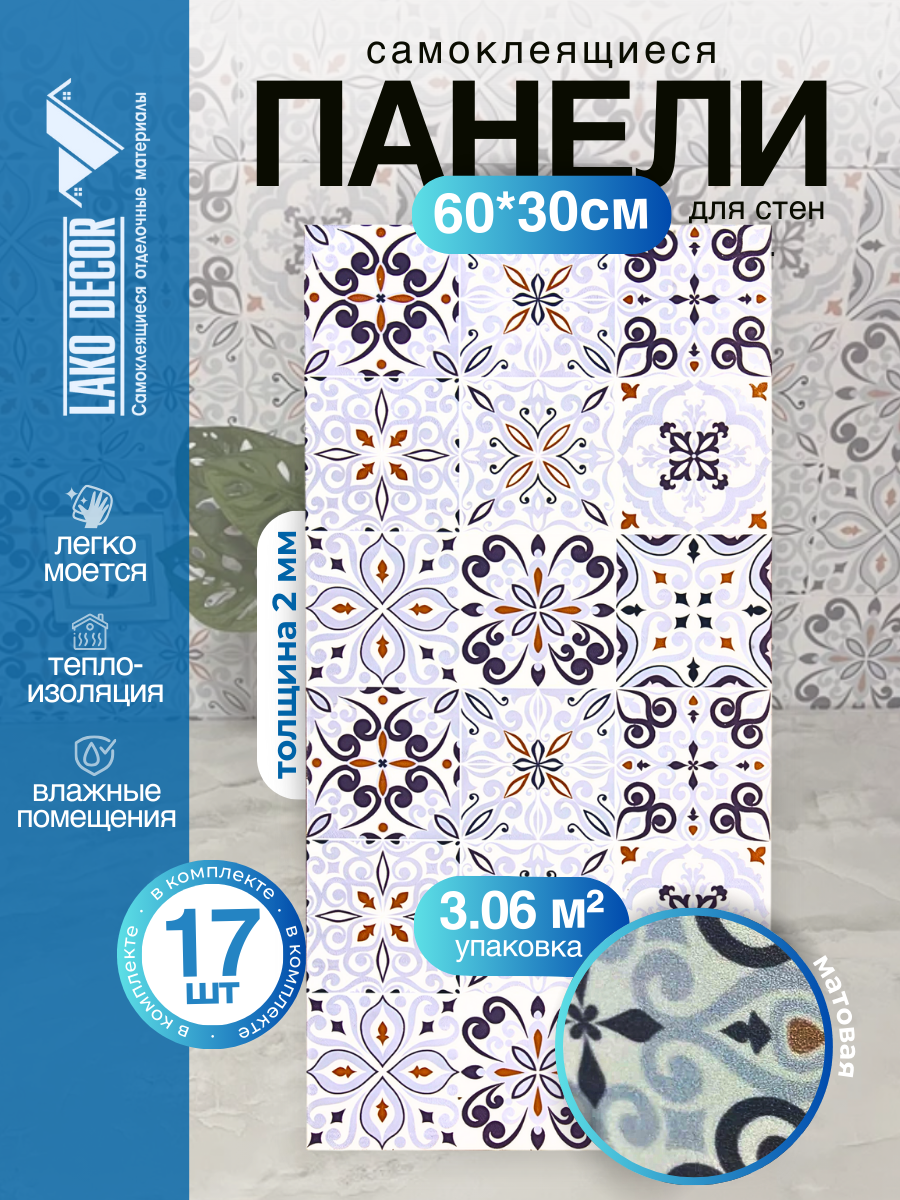Комплект 17 шт. самоклеящейся ПВХ плитки LAKO DECOR цвет "Дамаск", 60х30см, толщина 2мм, площадь 3,06 м2