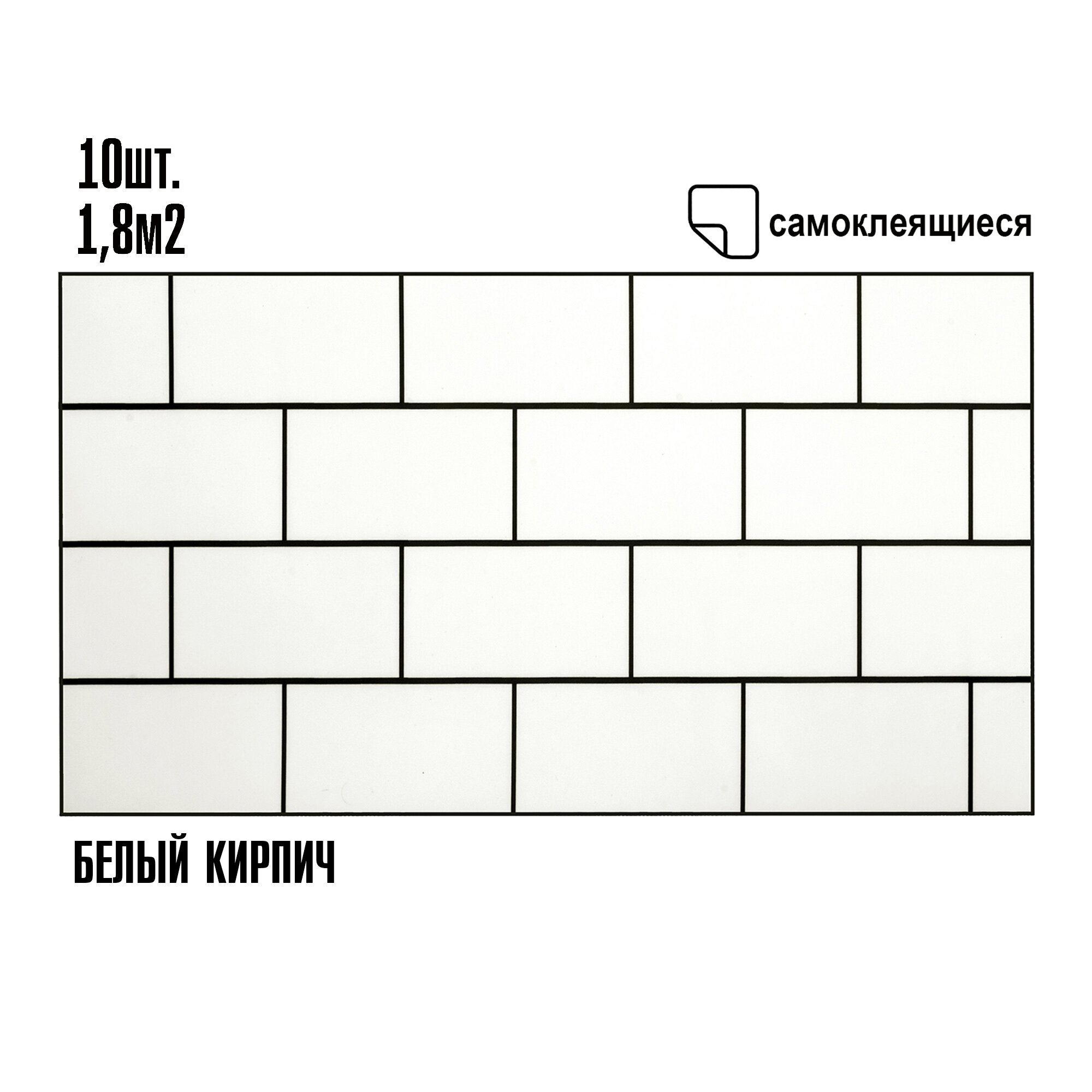 Купить Мини Комплект 10шт Самоклеящаяся ПВХ плитка LAKO DECOR "Белый кирпич", толщина 2мм, 1,8м²