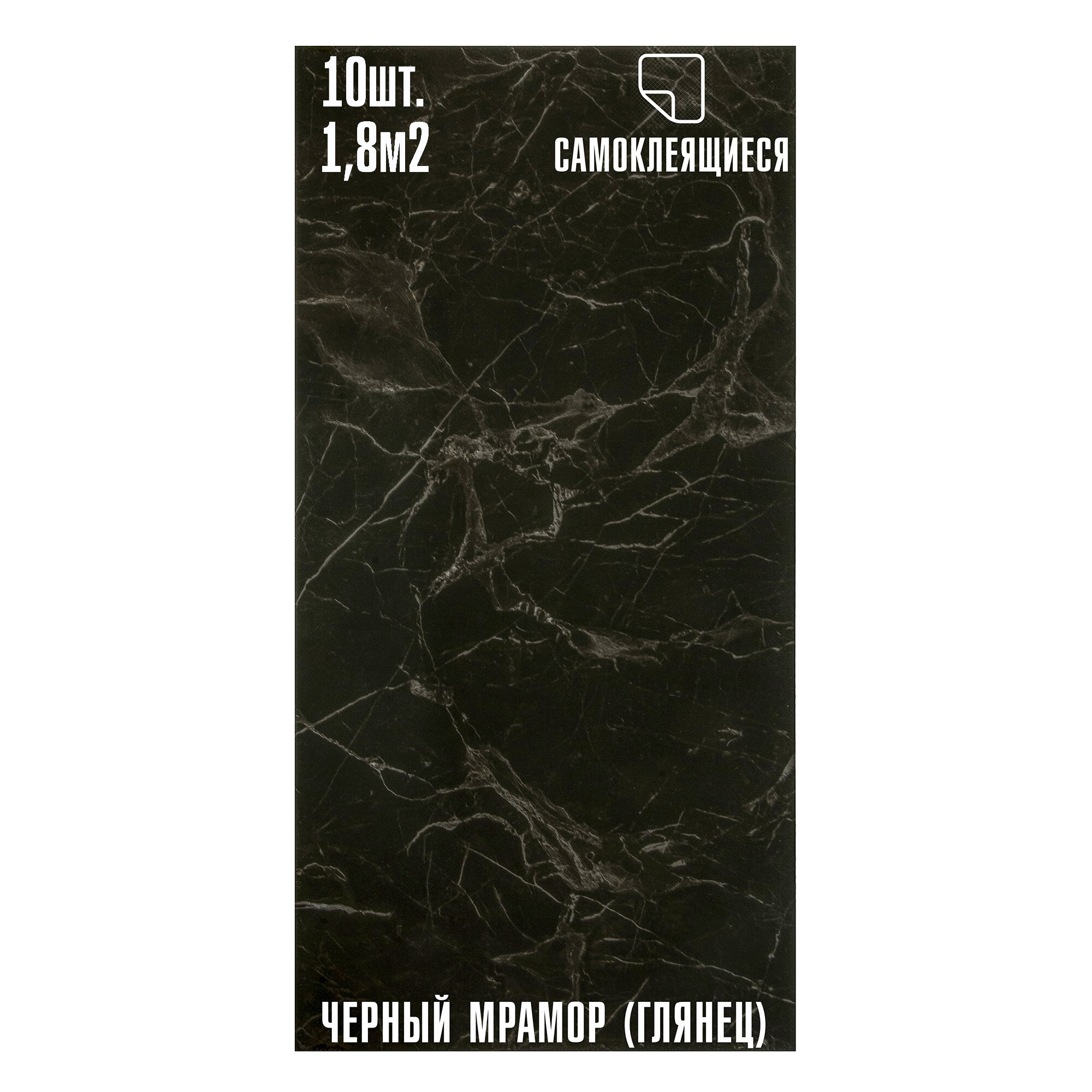 Купить Мини Комплект 10шт Самоклеящаяся ПВХ плитка LAKO DECOR "глянец черный мрамор", толщина 2мм, 1,8м²