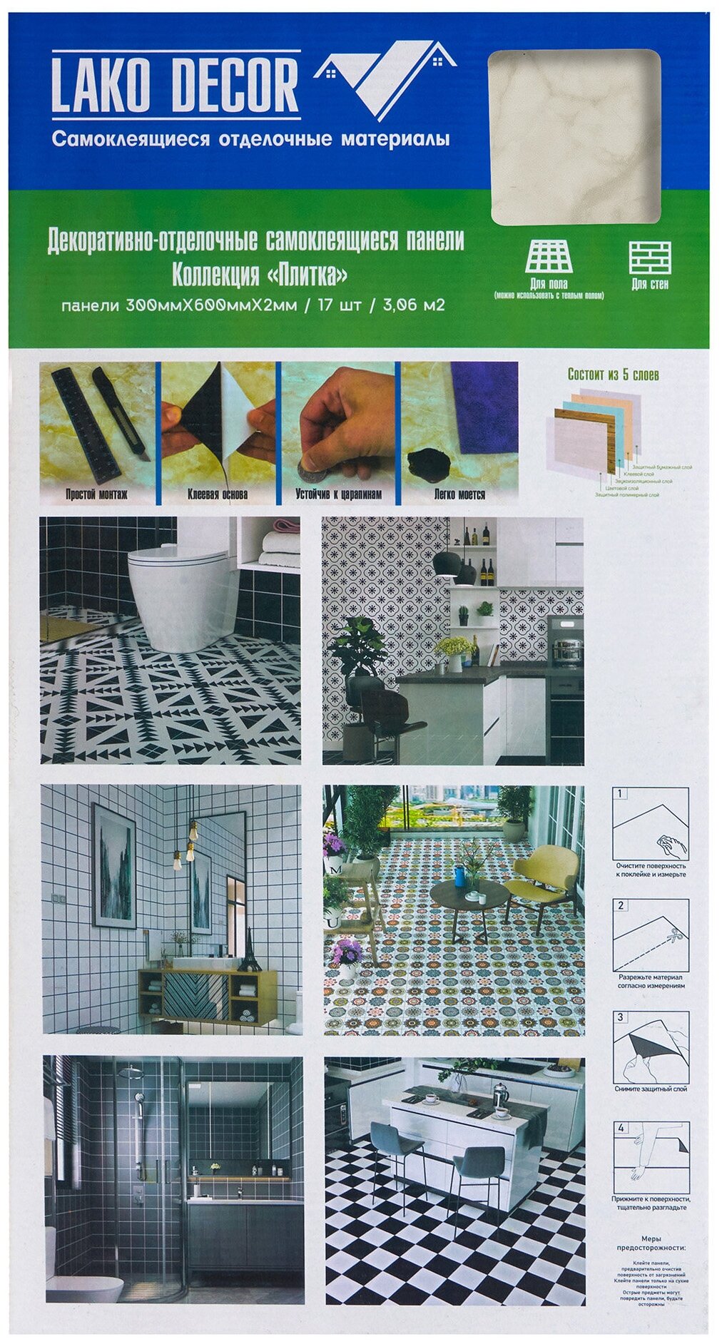 Мини Комплект 10шт Самоклеящаяся ПВХ плитка LAKO DECOR "Триполи", толщина 2мм, 1,8м²