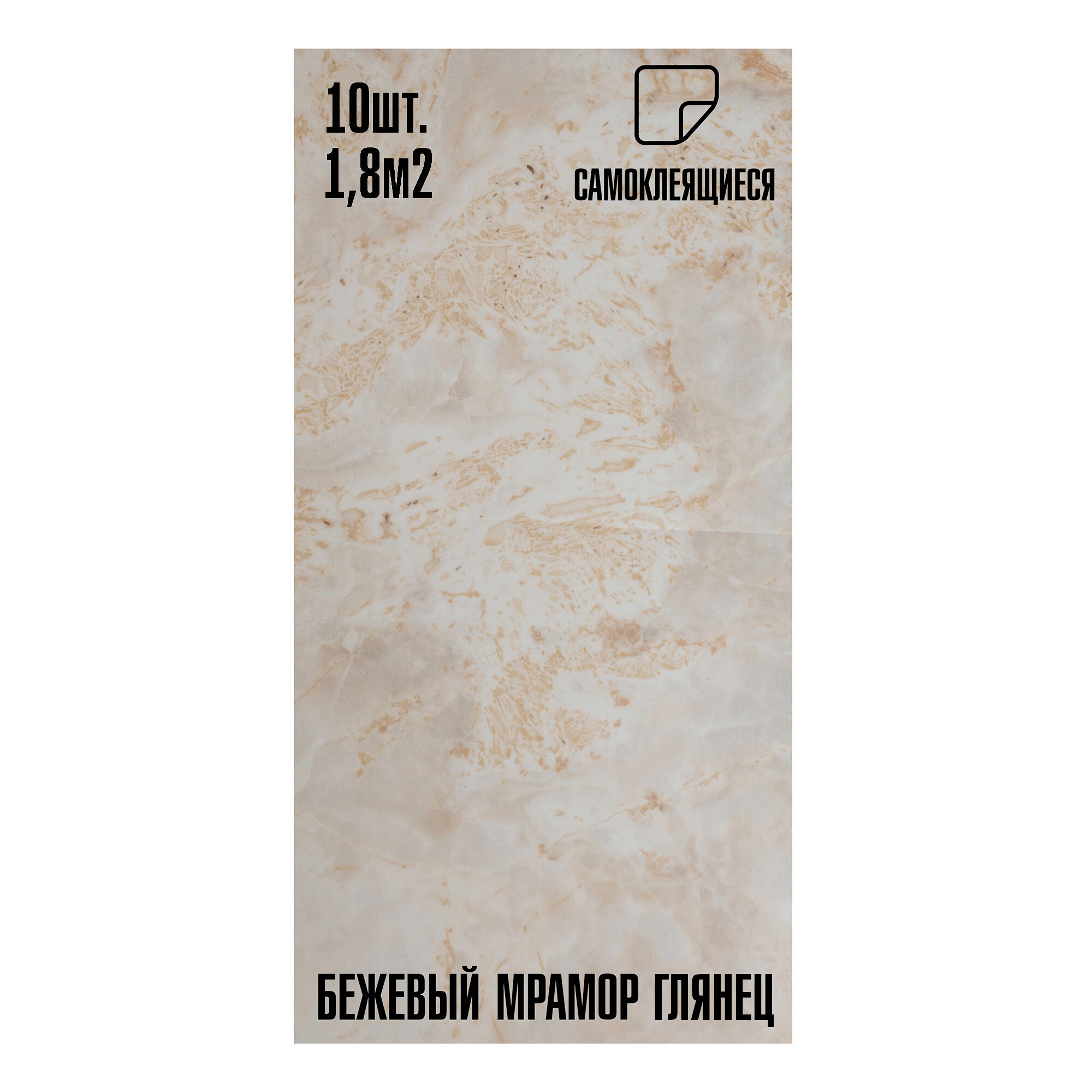 Купить Мини Комплект 10шт Самоклеящаяся ПВХ плитка LAKO DECOR "глянец бежевый мрамор", толщина 2мм, 1,8м²