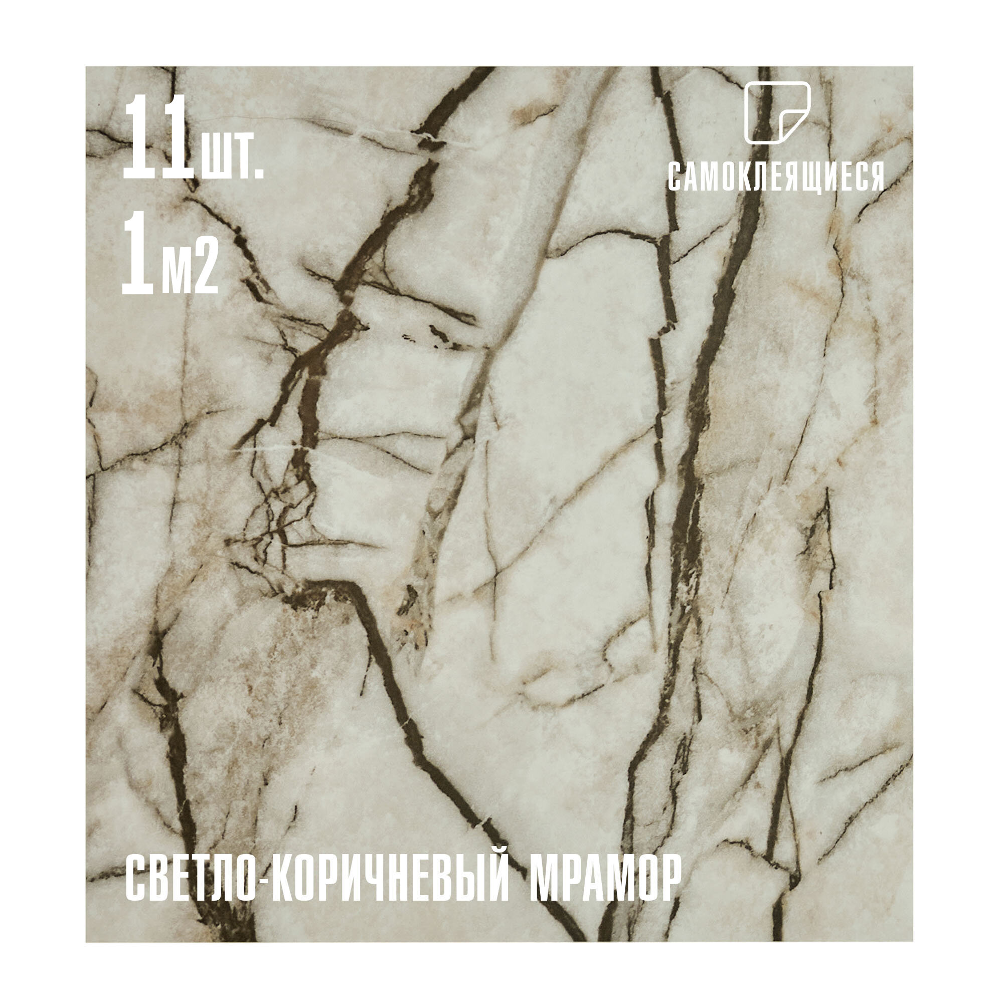 Купить Мини Комплект 11шт Самоклеящаяся ПВХ плитка LAKO DECOR "Cветло-коричневый мрамор", толщина 2мм, 1м²