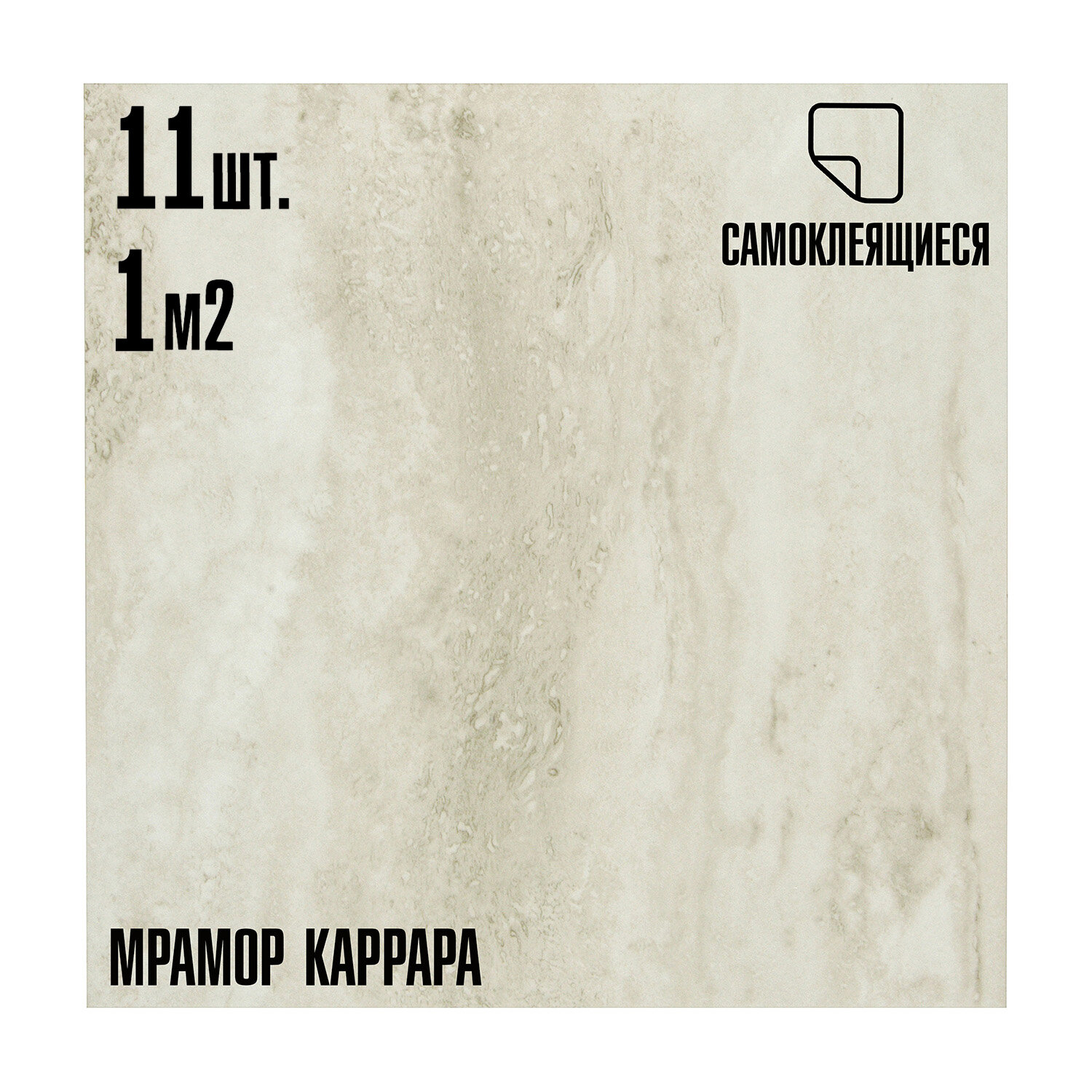 Купить Мини Комплект 11шт Самоклеящаяся ПВХ плитка LAKO DECOR "Мрамор Каррара", толщина 2мм, 1м²