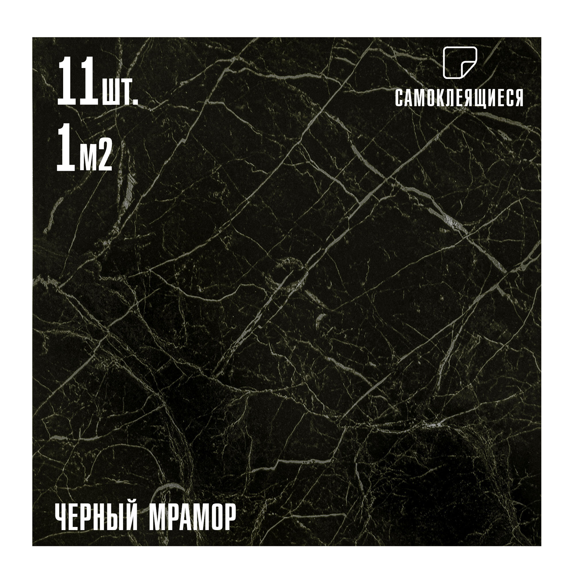Купить Мини Комплект 11шт Самоклеящаяся ПВХ плитка LAKO DECOR "Черный мрамор", толщина 2мм, 1м²