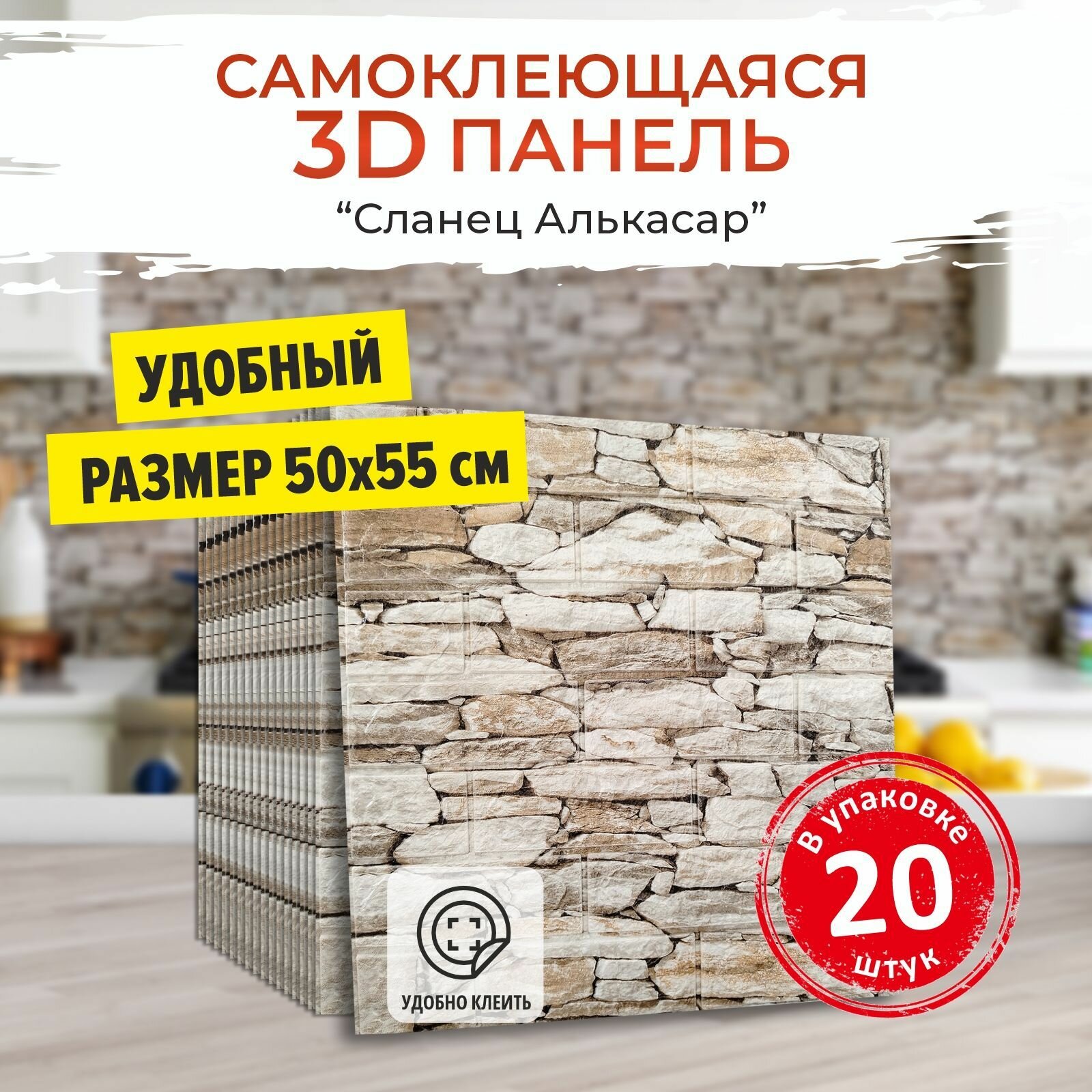Купить "Сланец Алькасар" 20 шт. мягкие 3д ПВХ панели самоклеющиеся для стен и потолка 500*550*4 мм обои для кухни моющиеся и плитка в ванну на стены