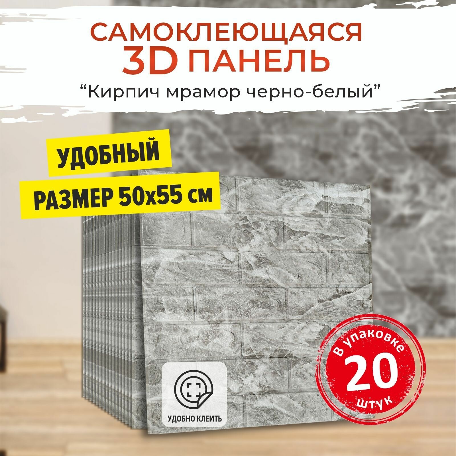 Купить "Мрамор черно-белый" 20 шт. самоклеящиеся мягкие 3д ПВХ панели для стен и потолка 500*550*4 мм вместо 3Д обоев для стен и потолочной плитки