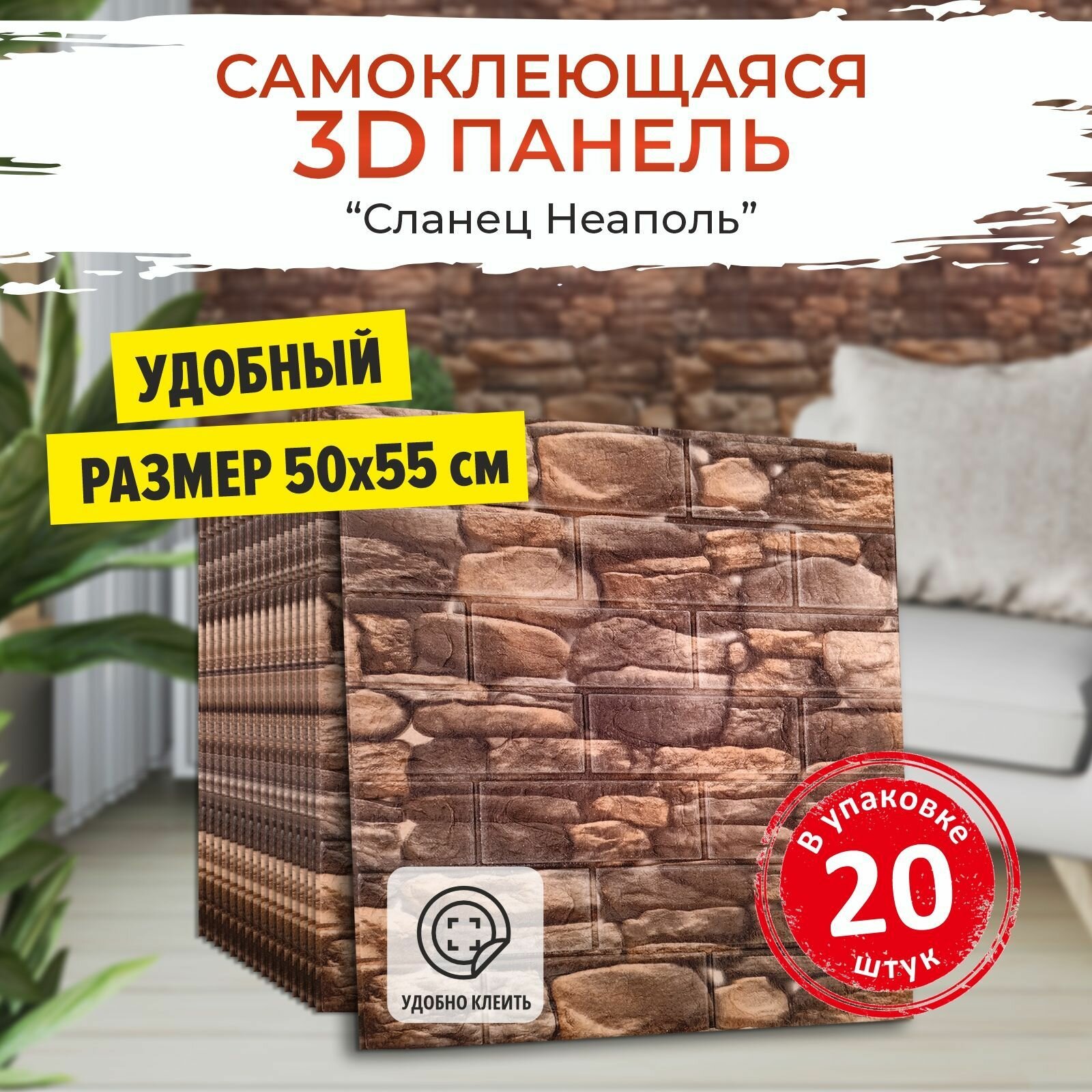 Купить "Сланец Неаполь" 20 шт. самоклеющаяся панель для стен и потолка 500*550*4 мм обои для кухни моющиеся влагостойкие изголовье для кровати мягкое 3д ПВХ