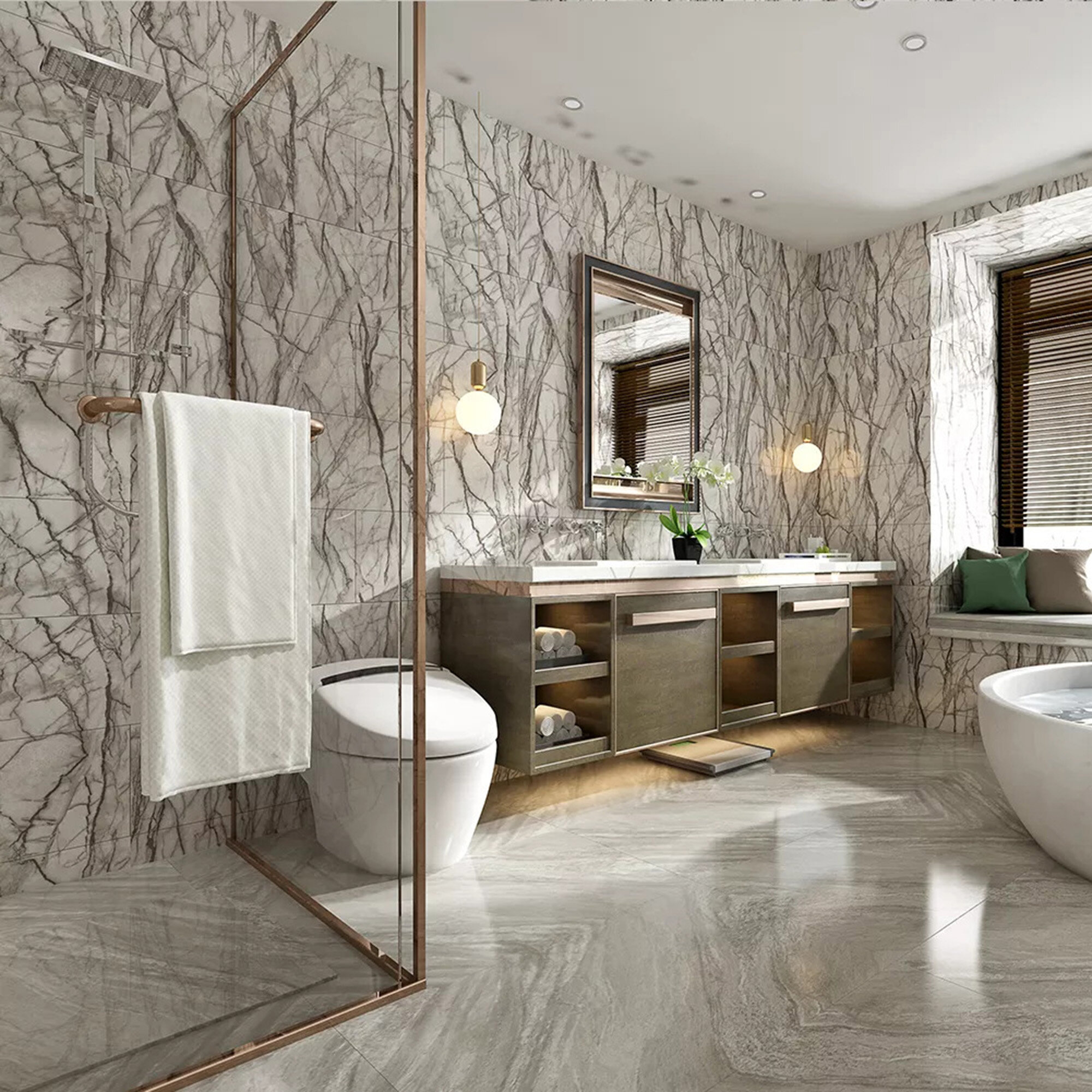 Мега-комплект 56 шт. Самоклеящейся ПВХ плитки LAKO DECOR "Cветло-серый мрамор", толщина 2мм, 5м²