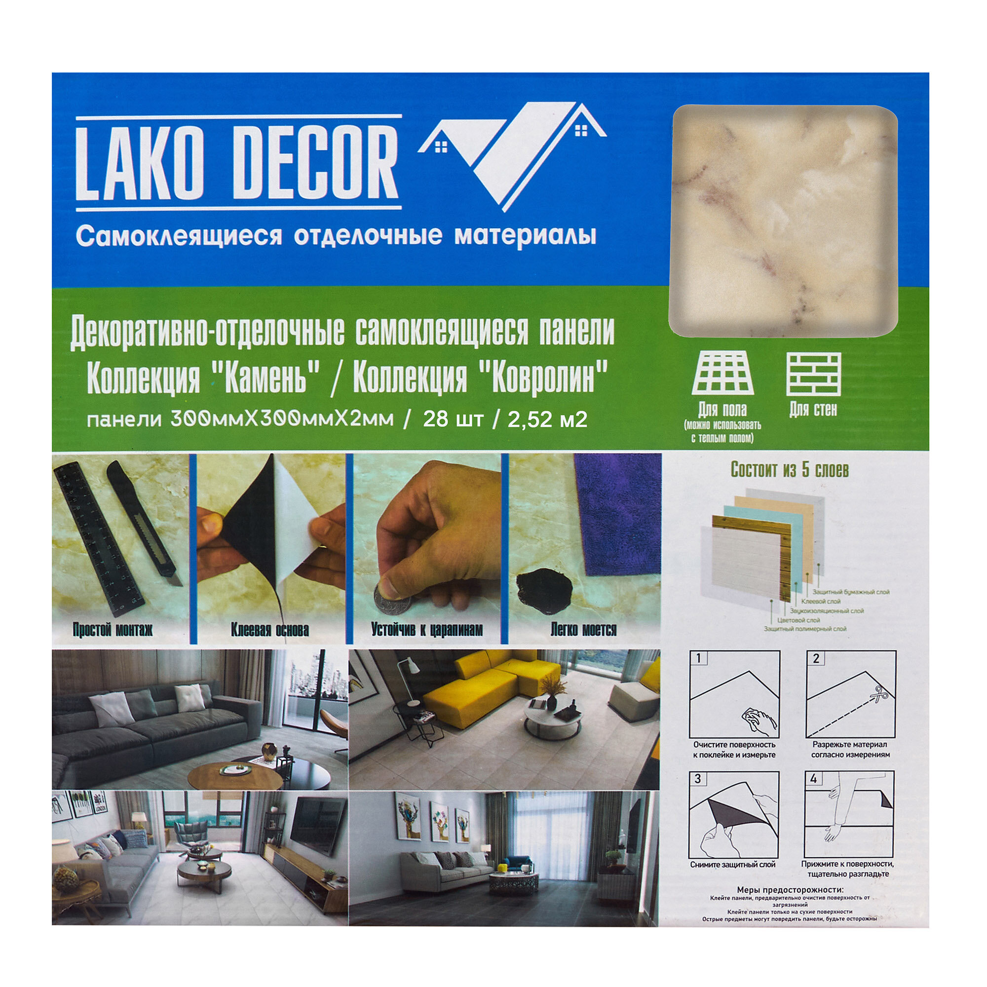 Мега-комплект 56 шт. Самоклеящейся ПВХ плитки LAKO DECOR "Мрамор Карелия", толщина 2мм, 5м²