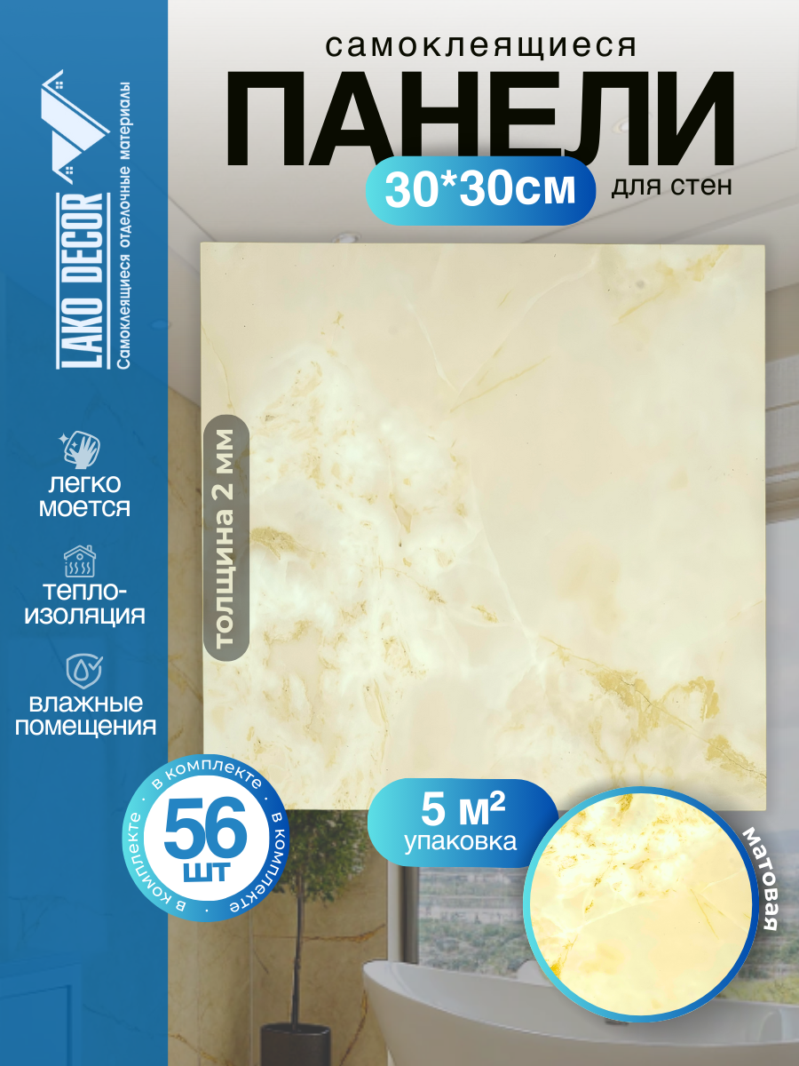 Купить Мега-комплект 56 шт. Самоклеящейся ПВХ плитки LAKO DECOR "Бежевый мрамор", толщина 2мм, 5м²