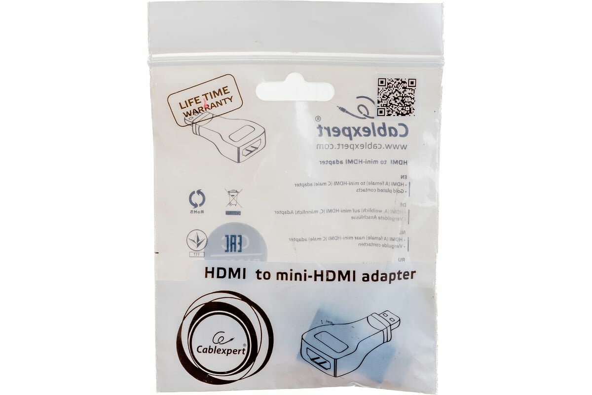 Переходник Cablexpert HDMI <-> miniHDMI 19F/19M, золотые разъемы