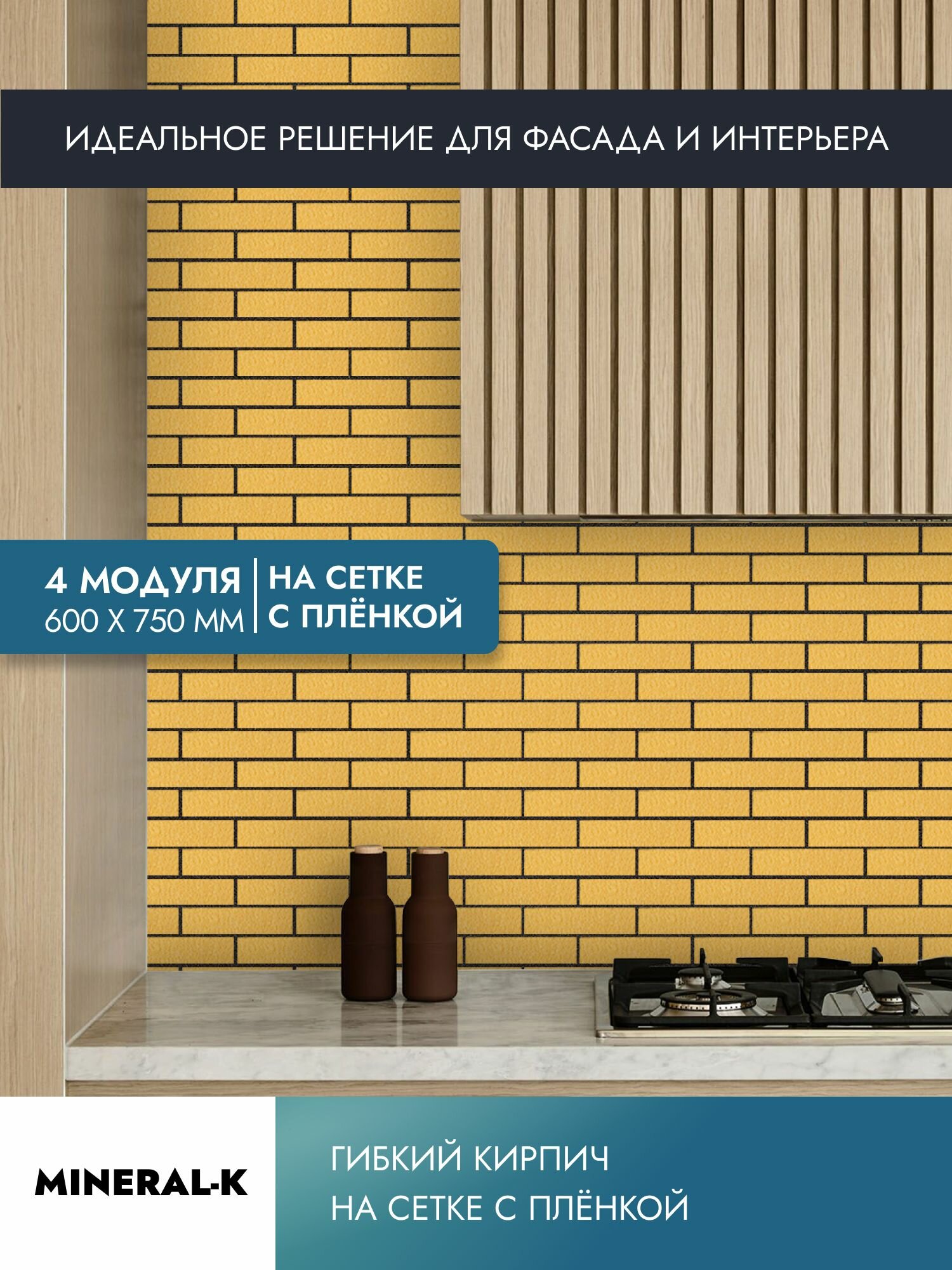 Гибкий кирпич на сетке с защитной плёнкой - 1.8 м²/жёлтая дыня
