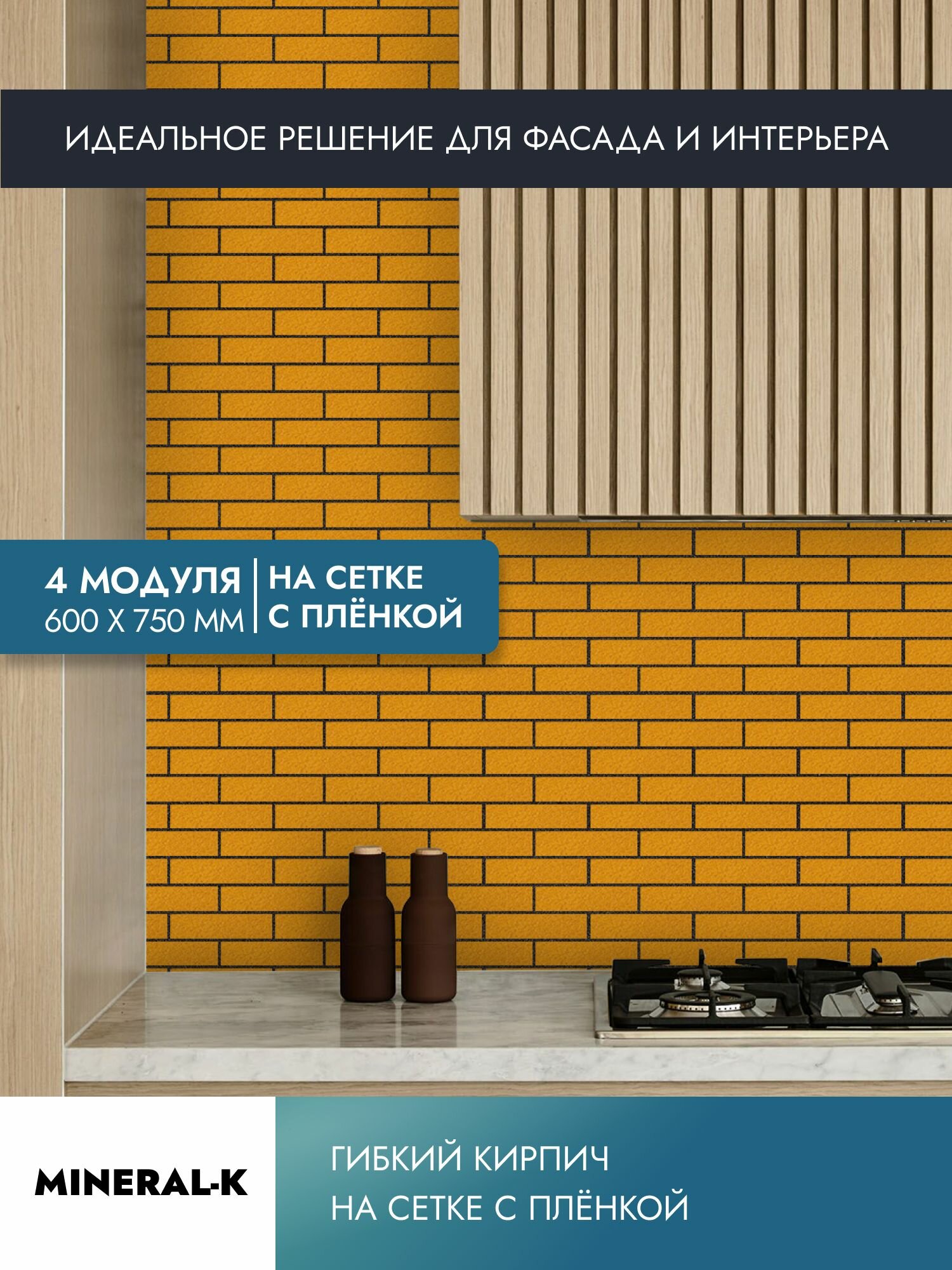 Гибкий кирпич на сетке с защитной плёнкой - 1.8 м²/морковные ноты