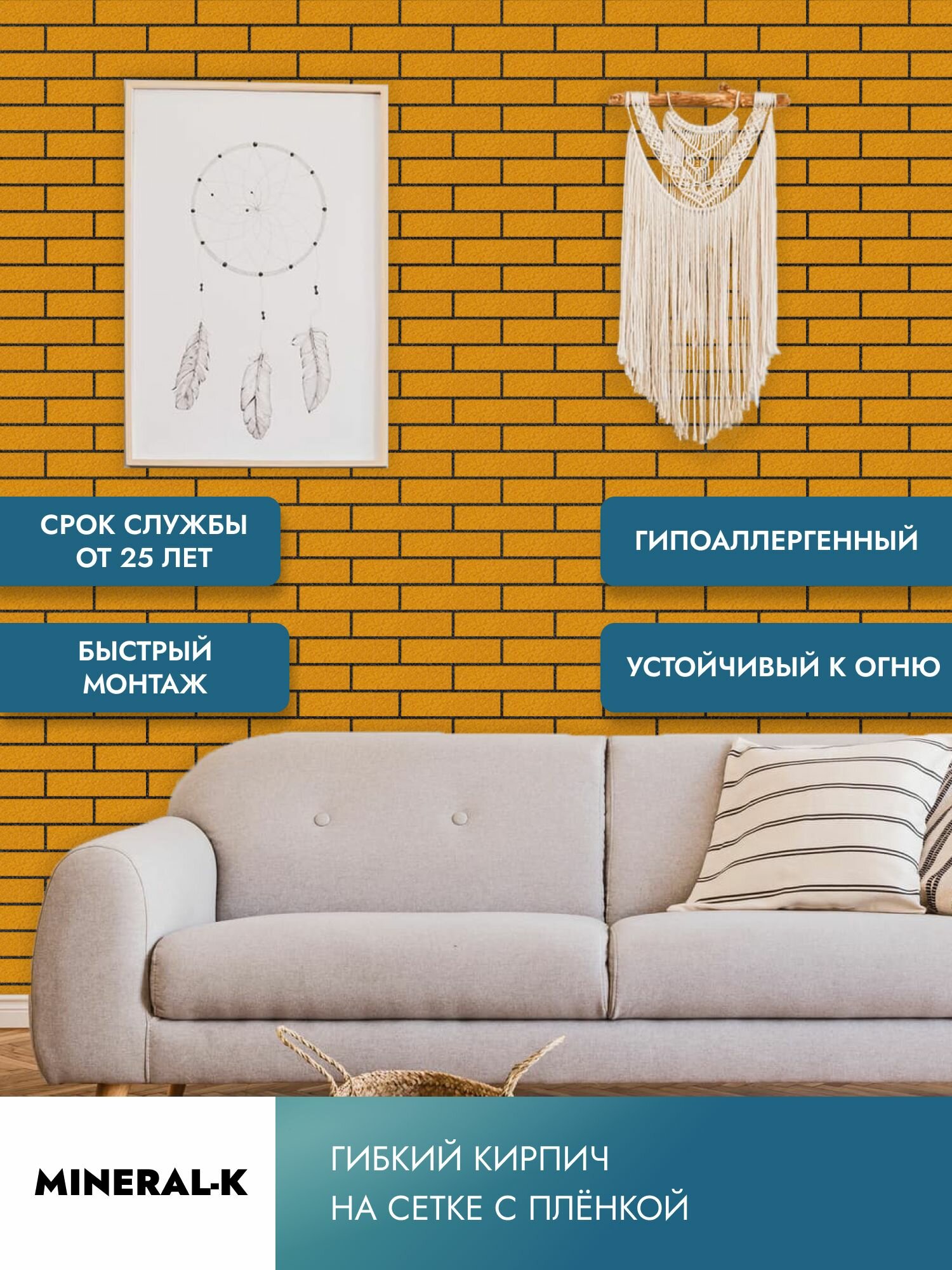 Гибкий кирпич на сетке с защитной плёнкой - 1.8 м2/жёлтый песок
