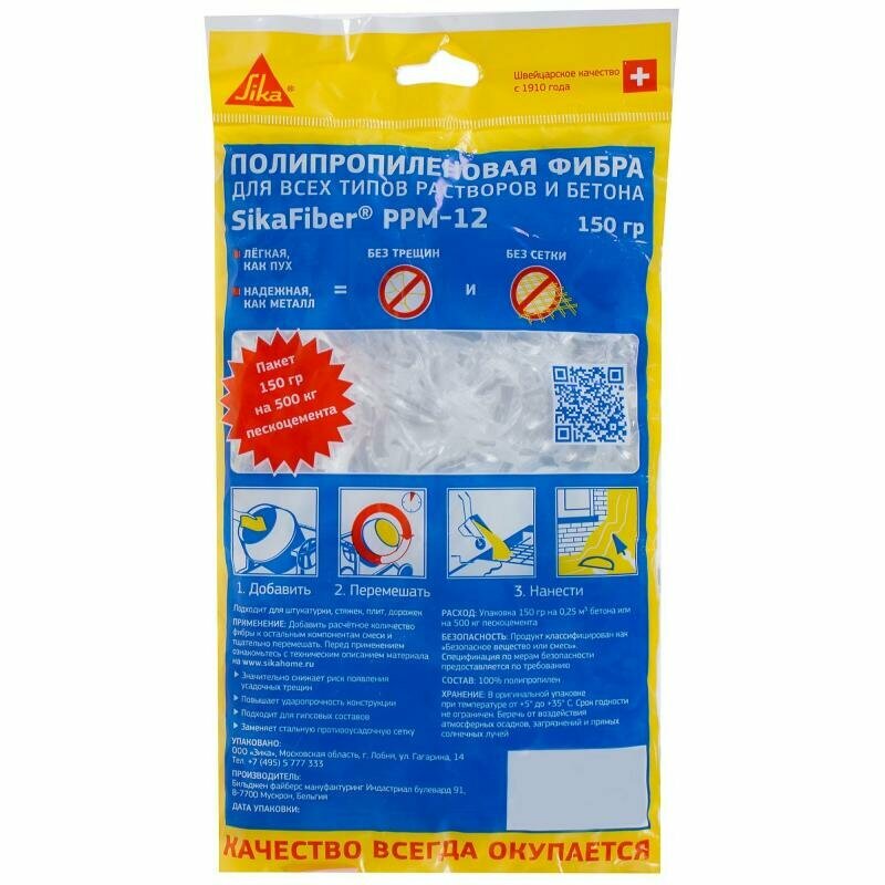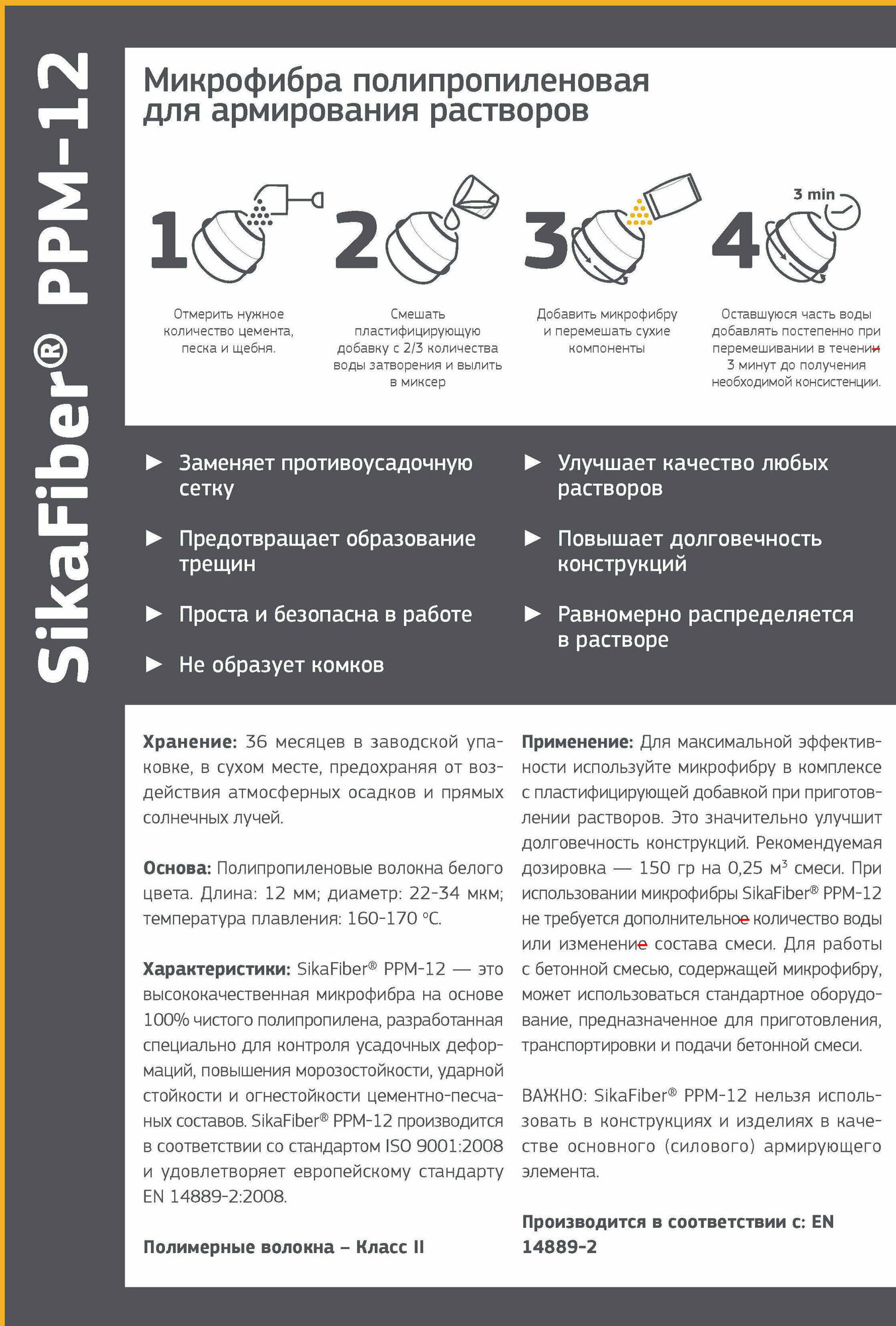 | Дополнительная информация | Армирующая фибра для бетона SikaFiber PPM-12 150 г |