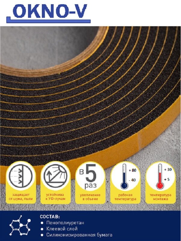 Предварительно сжатая уплотнительная лента ПСУЛ "OKNO-V" 15*30 мм, длина 5 м интересное: