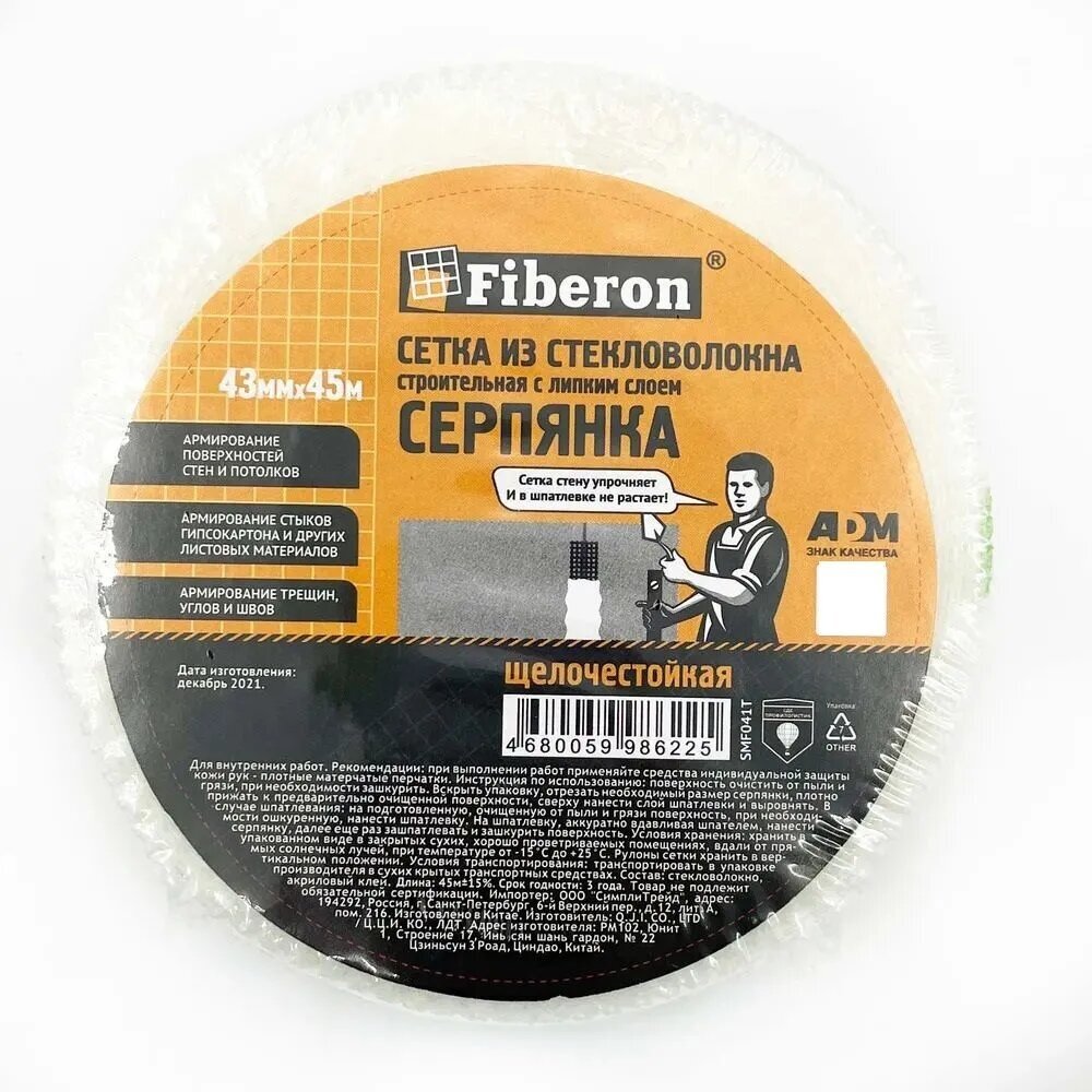 | Дополнительная информация | Сетка самоклеящаяся (серпянка) Fiberon 43мм х 90м |