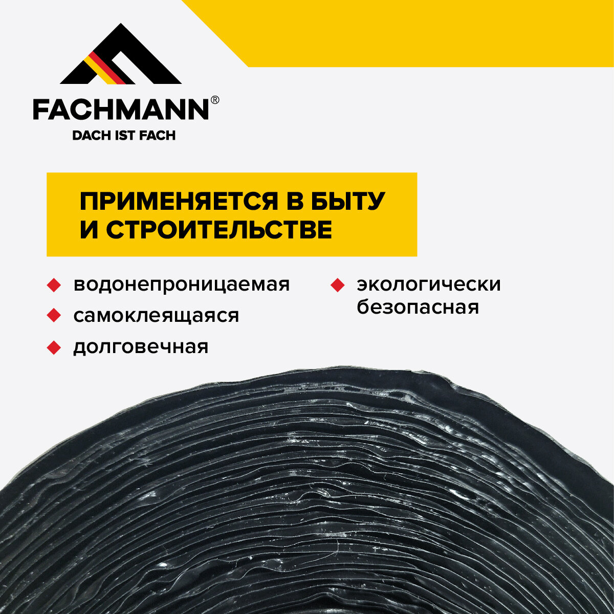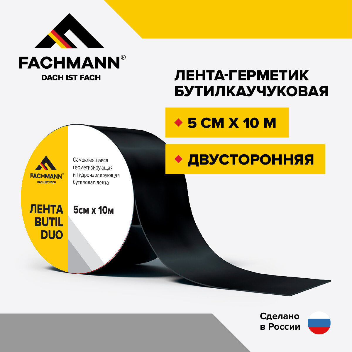 Самоклеящаяся бутилкаучуковая двусторонняя лента герметик FACHMANN Butil Duo 5 см. х 10 м. интересное: