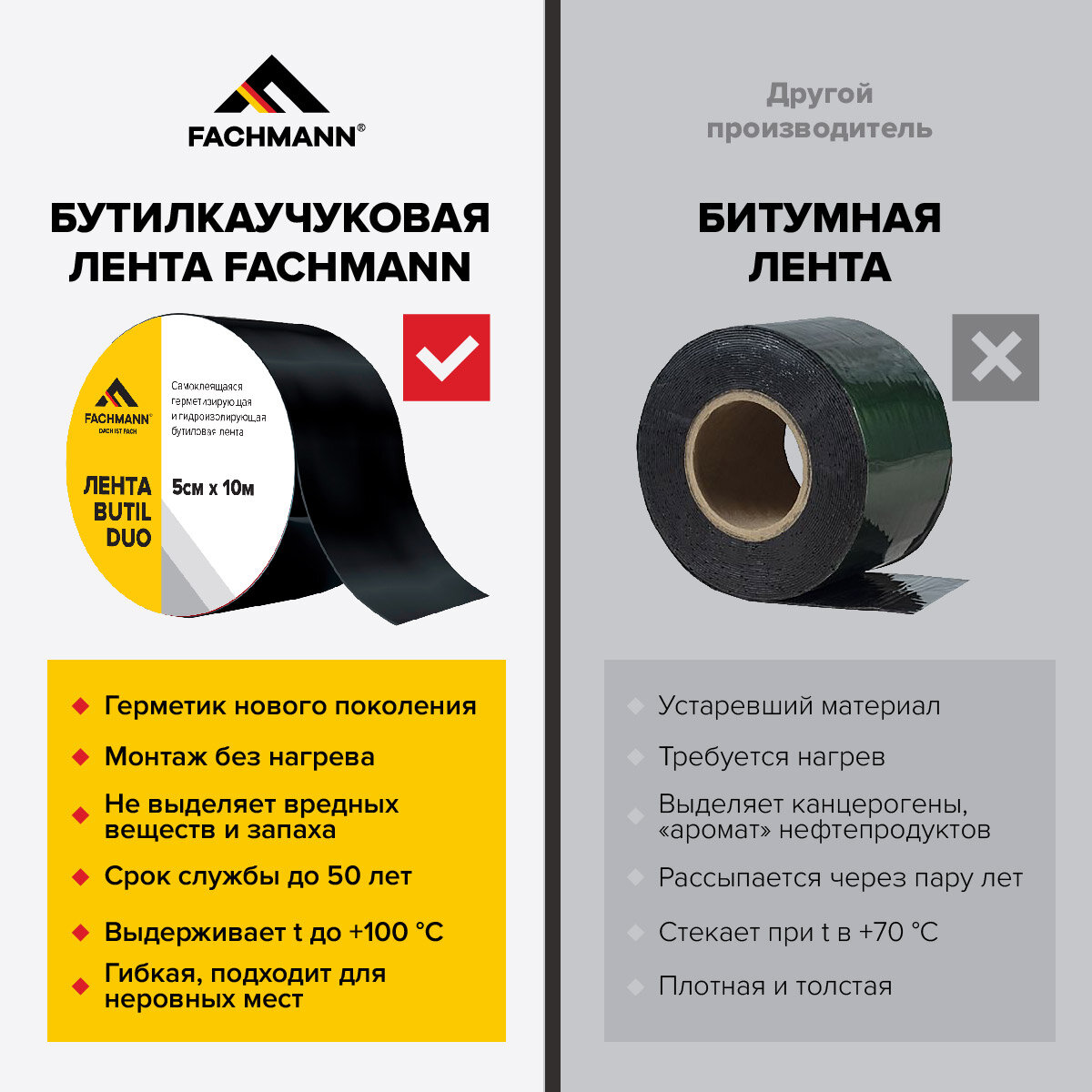 Ниже Вы можете прочитать отзывы на Самоклеящаяся бутилкаучуковая двусторонняя лента герметик FACHMANN Butil Duo 5 см. х 10 м., ознакомится с подробными характеристиками, посмотреть интересные обзоры и фотографии на Самоклеящаяся бутилкаучуковая двусторонняя лента герметик FACHMANN Butil Duo 5 см. х 10 м..