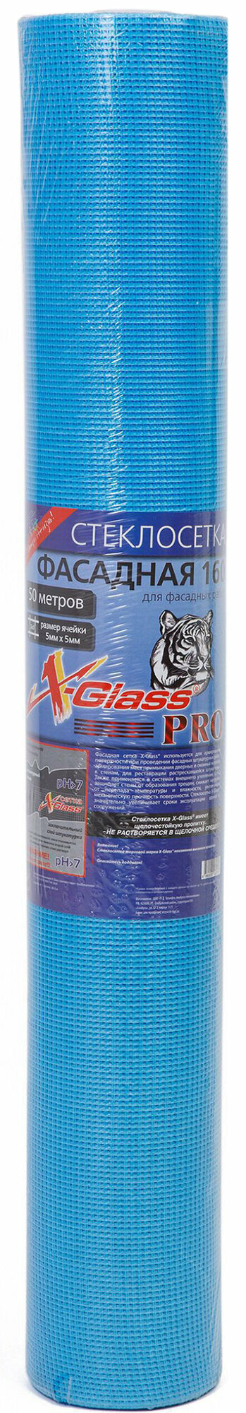 Сетка стеклотканевая фасадная X-Glass Pro 5x5 мм, 1x50 м, 160 гр/кв.м Б0000003649