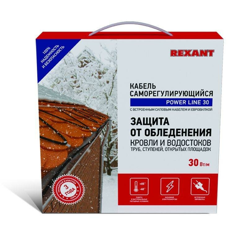 СохранитьКомплект греющего кабеля REXANT 30 Вт/м для установки на трубу, кровлю, водосток, 220 В, 3 м интересное: