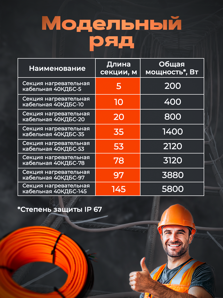 Греющий кабель кдбс 40Вт/м для прогрева бетона - 78 м