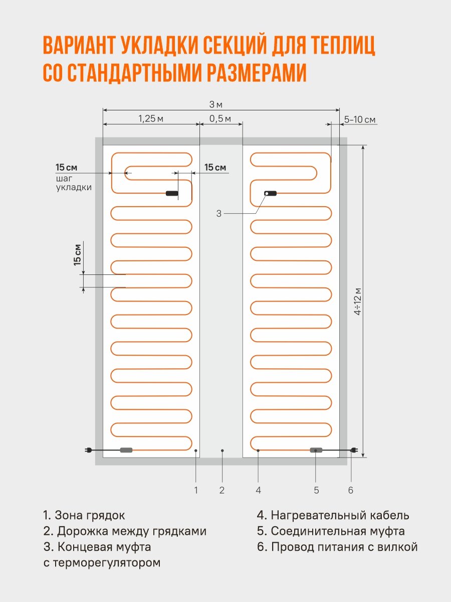 Обогрев грунта в теплице с термостатом, 6 кв.м., 675 Вт