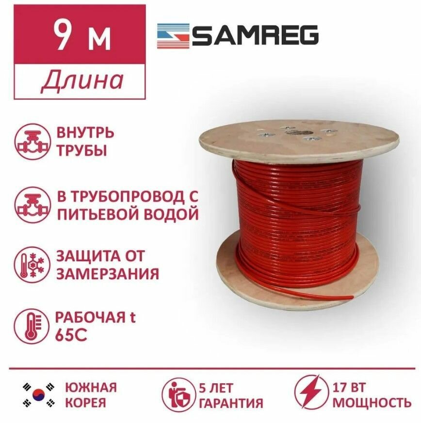 Саморегулирующийся пищевой греющий кабель Samreg 17HTM-2CT (9м), красный