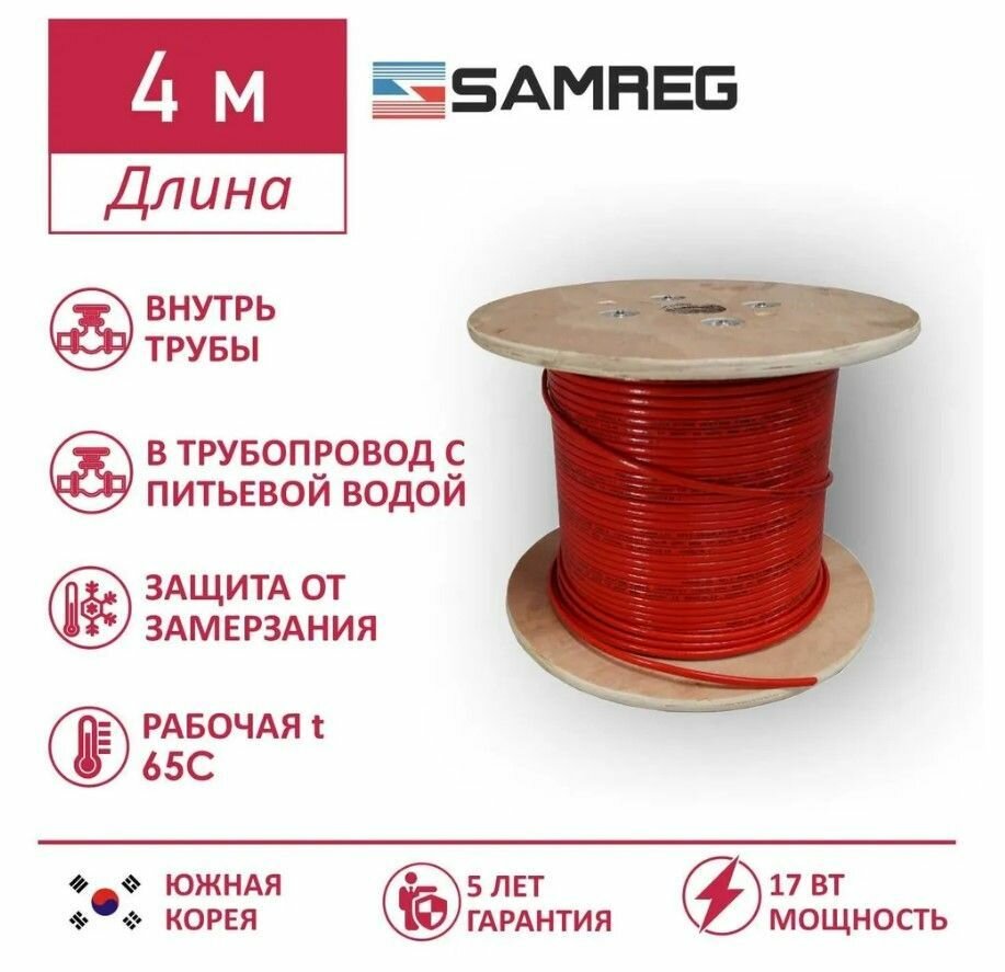 Купить Саморегулирующийся пищевой греющий кабель Samreg 17HTM-2CT (4м), красный