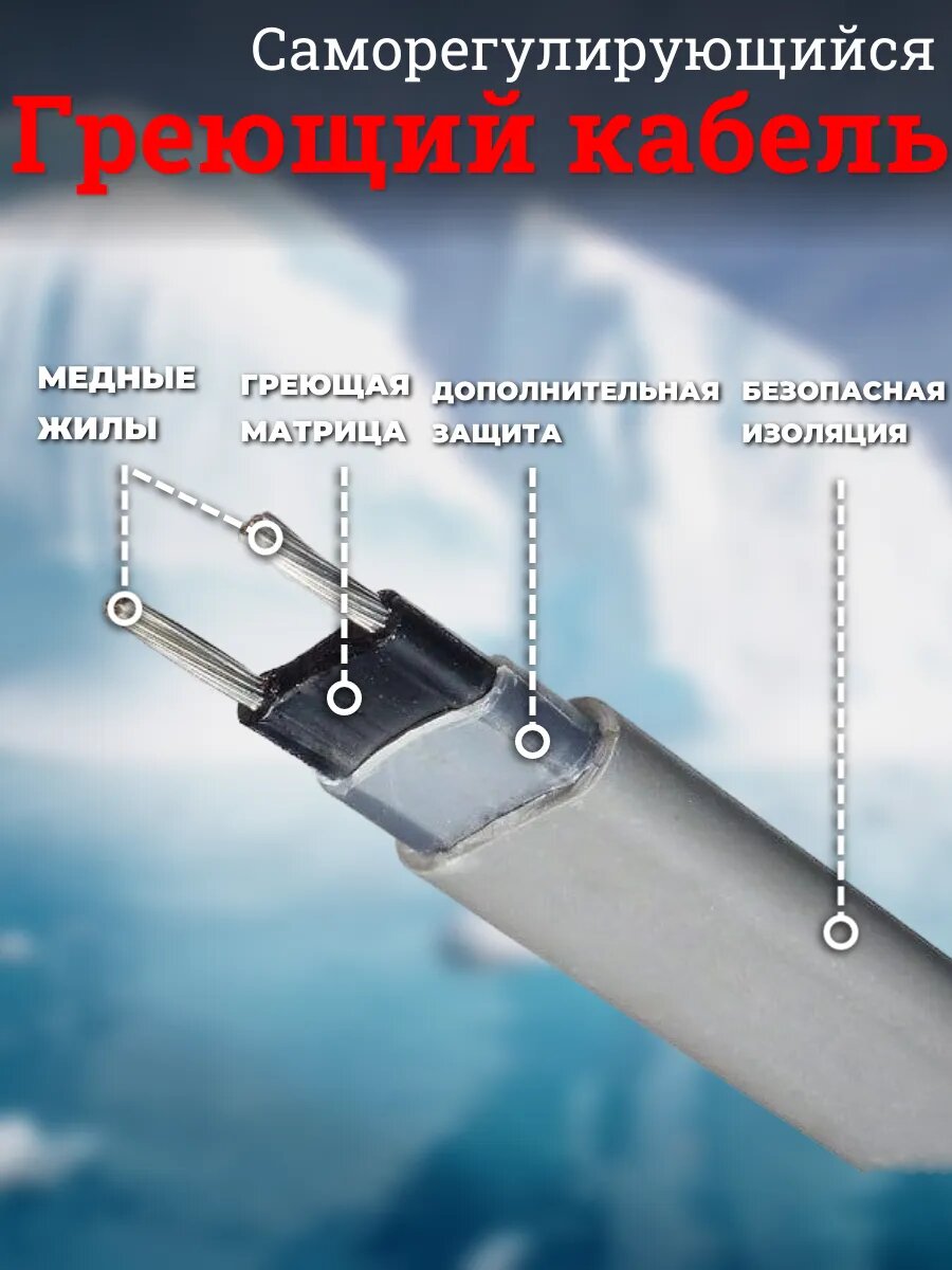 Греющий кабель обогрев люкс Греющий саморегулирующийся кабель в трубу 6 метров Обогрев Люкс с сальником