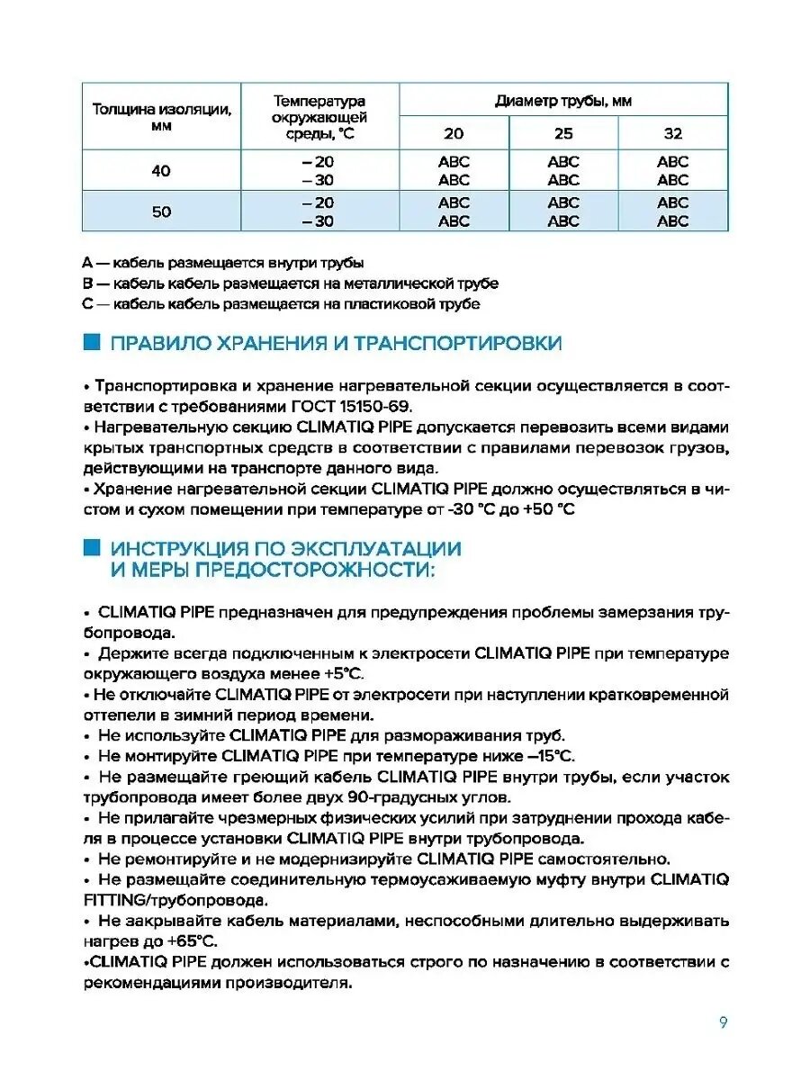 Система обогрева труб CLIMATIQ PIPE 30 м 300 Вт