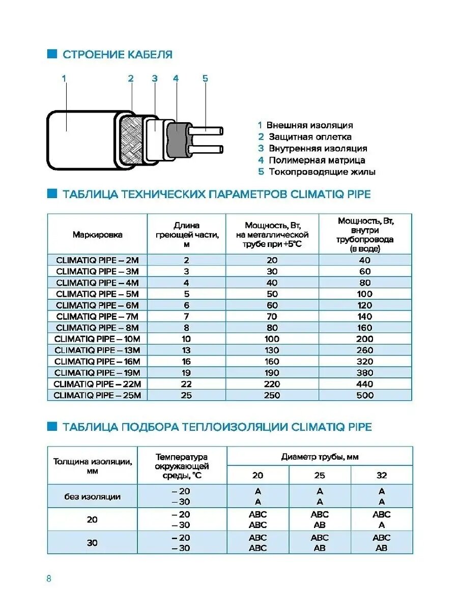 Комплект защиты трубопровода от замерзания CLIMATIQ PIPE-8m