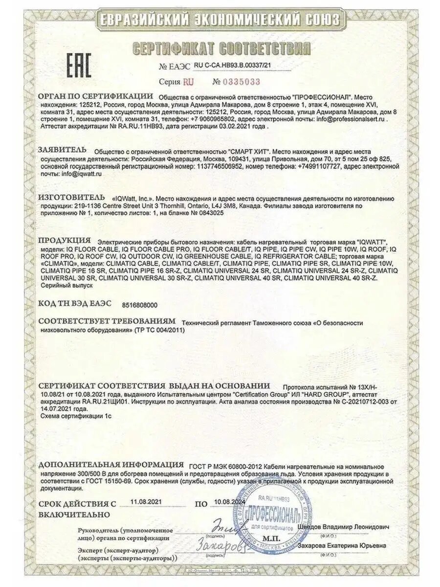 | Подробная комплектация | саморегулирующийся греющий кабель, силовой провод, штепсельная евро-вилка, соединительная муфта, концевая заделка |