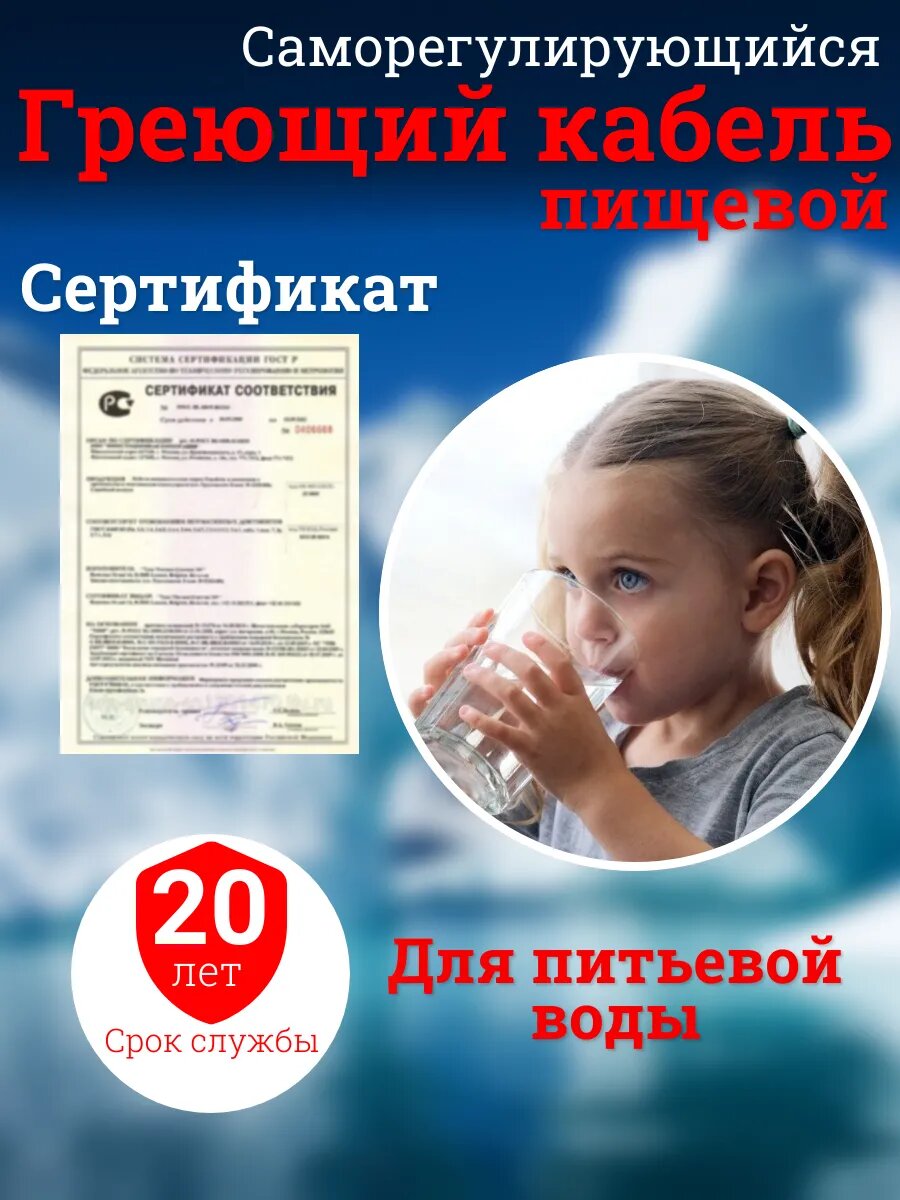 СохранитьГреющий саморегулирующийся кабель в трубу для питьевой воды Амирия Коттедж на отрез 7 метров интересное: