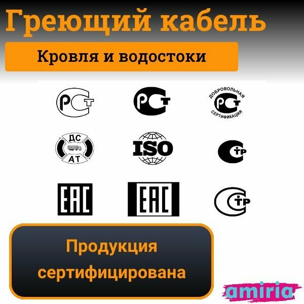 Саморегулирующийся греющий кабель на отрез для кровли и водостоков c УФ защитой 30 Вт/м (10м)