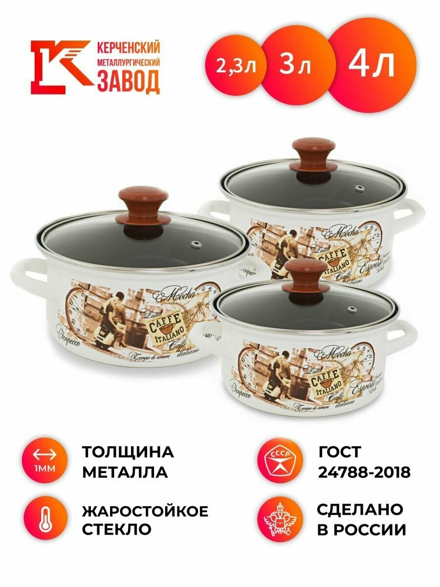 Набор посуды эмалированная сталь, 6 предметов, кастрюли 2.3,3,4л, Керченский металлургический завод, Эспрессо-1-Экстра