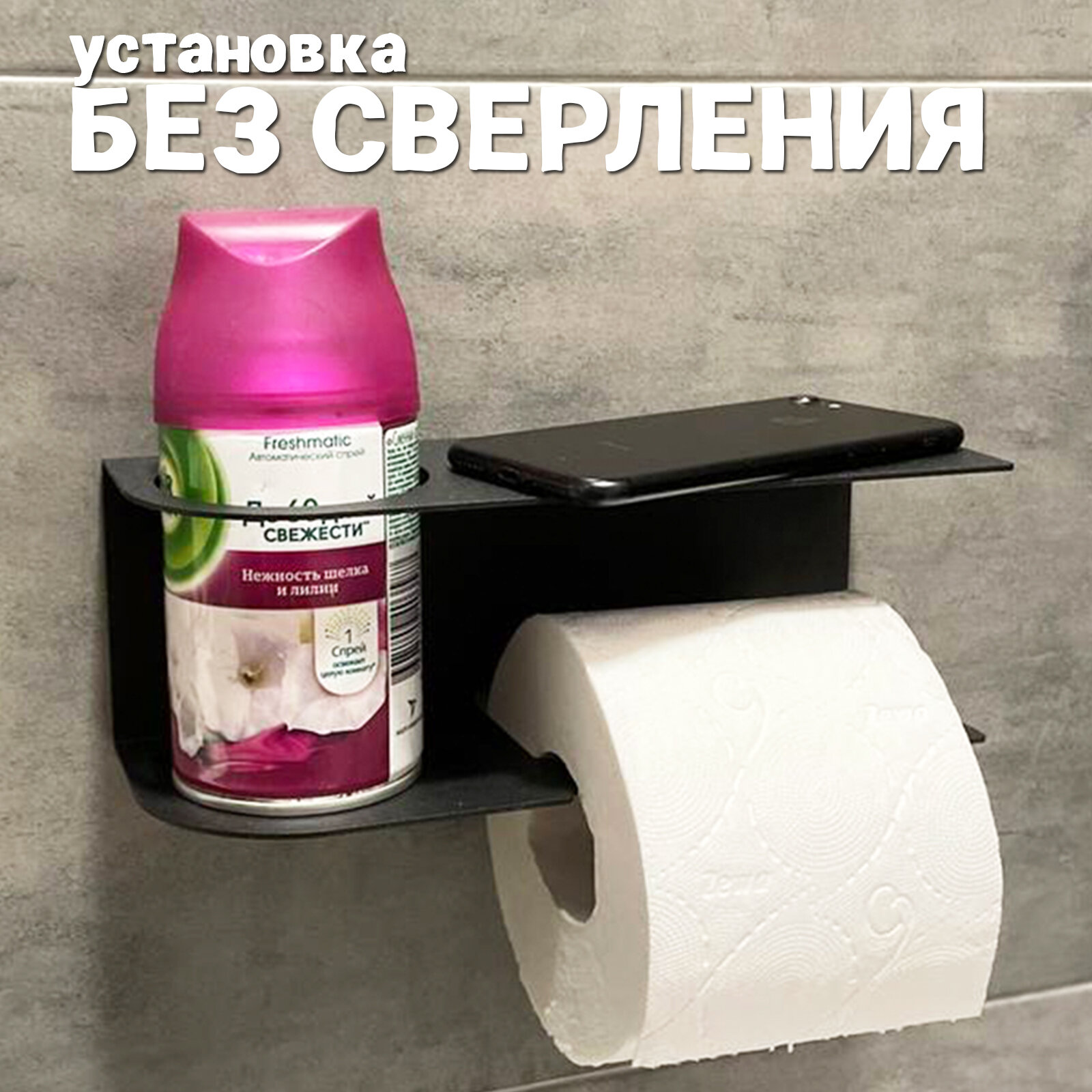 Держатель для туалетной бумаги настенный с полкой для телефона и освежителя. Полка в ванную. интересное: