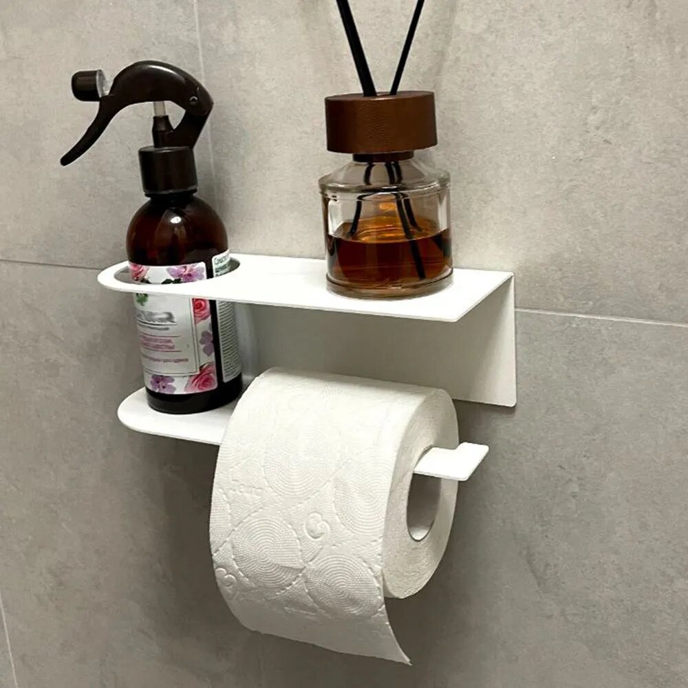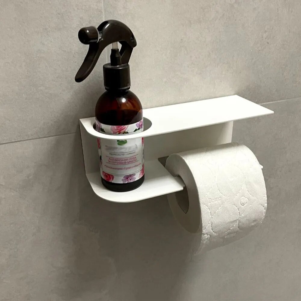 Держатель для туалетной бумаги настенный с полкой для телефона и освежителя. Полка в ванную.