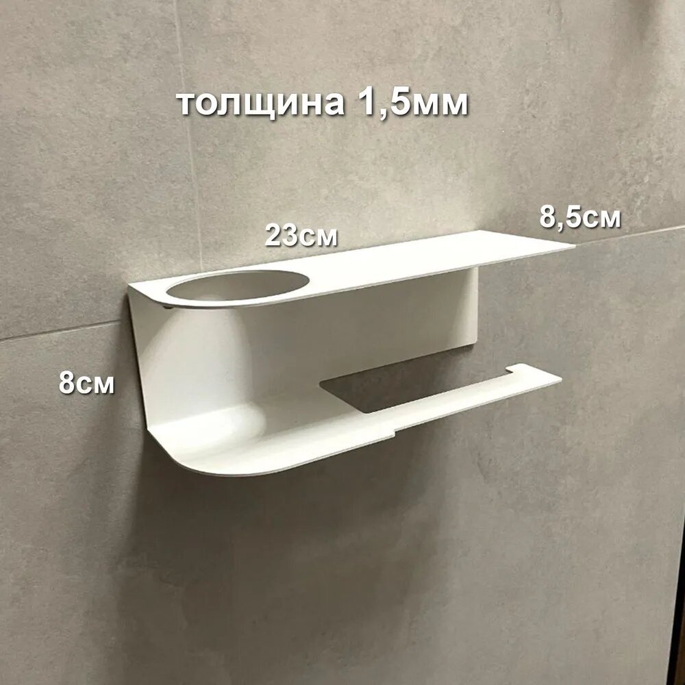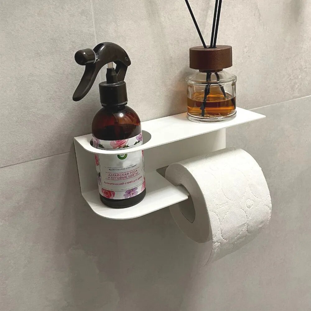 Держатель для туалетной бумаги настенный с полкой для телефона и освежителя. Полка в ванную. Белая. интересное: