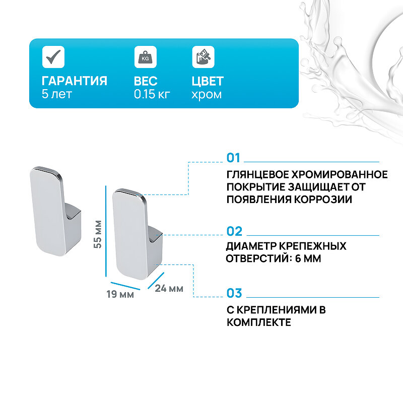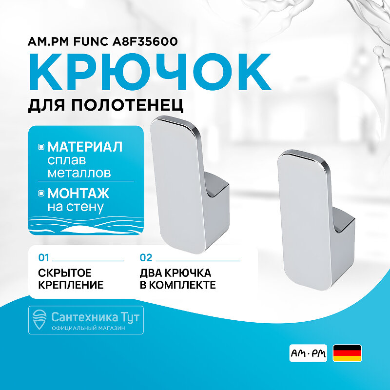 Крючки для ванной AM.PM Func A8F35600 2 шт, хром, крючок для полотенец в ванную, гарантия 5 лет, Германия интересное: