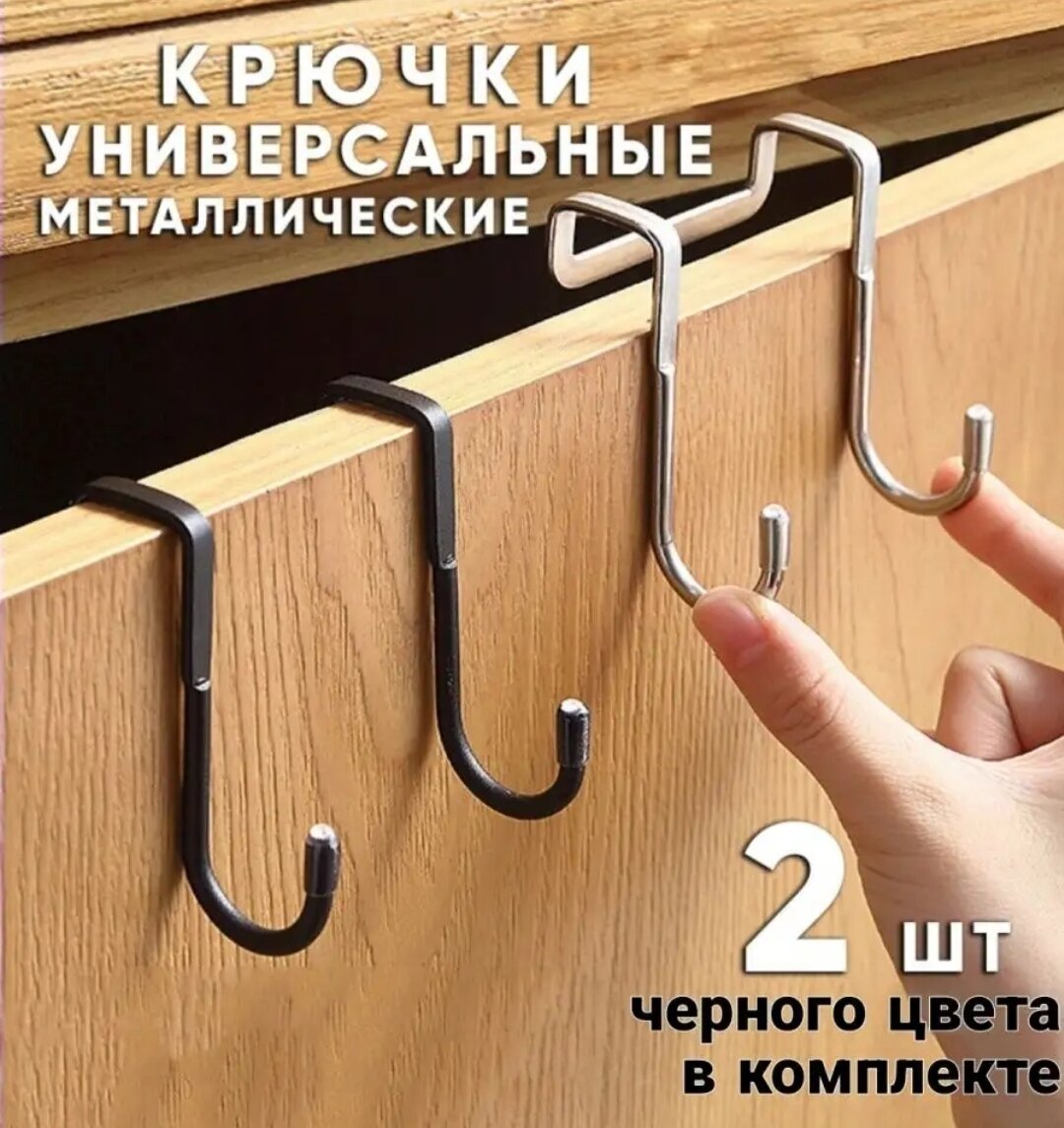 Крючок двойной навесной на дверь шкафа на кухню черный матовый, 2шт. интересное: