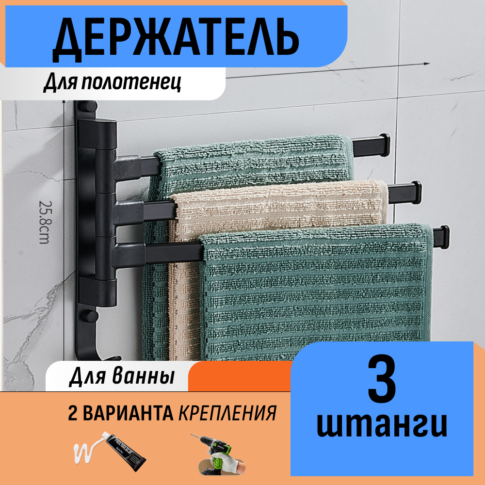 Держатель для полотенец вращающийся с 3 штангами интересное: