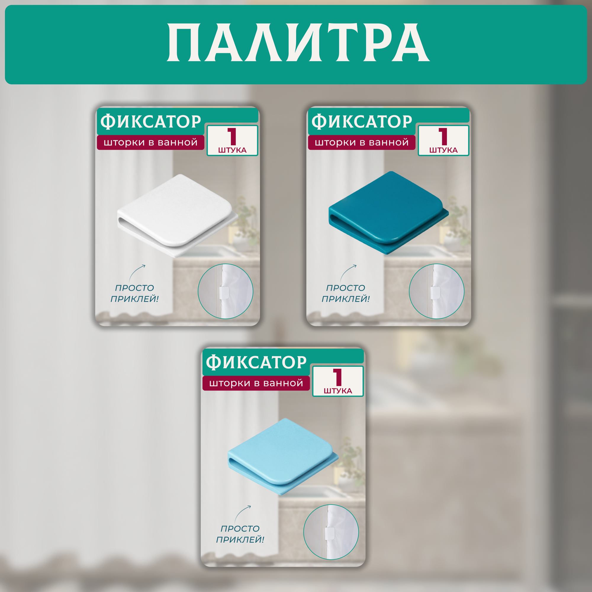Держатель-фиксатор для шторки в ванной 1 штука бирюзовый интересное: